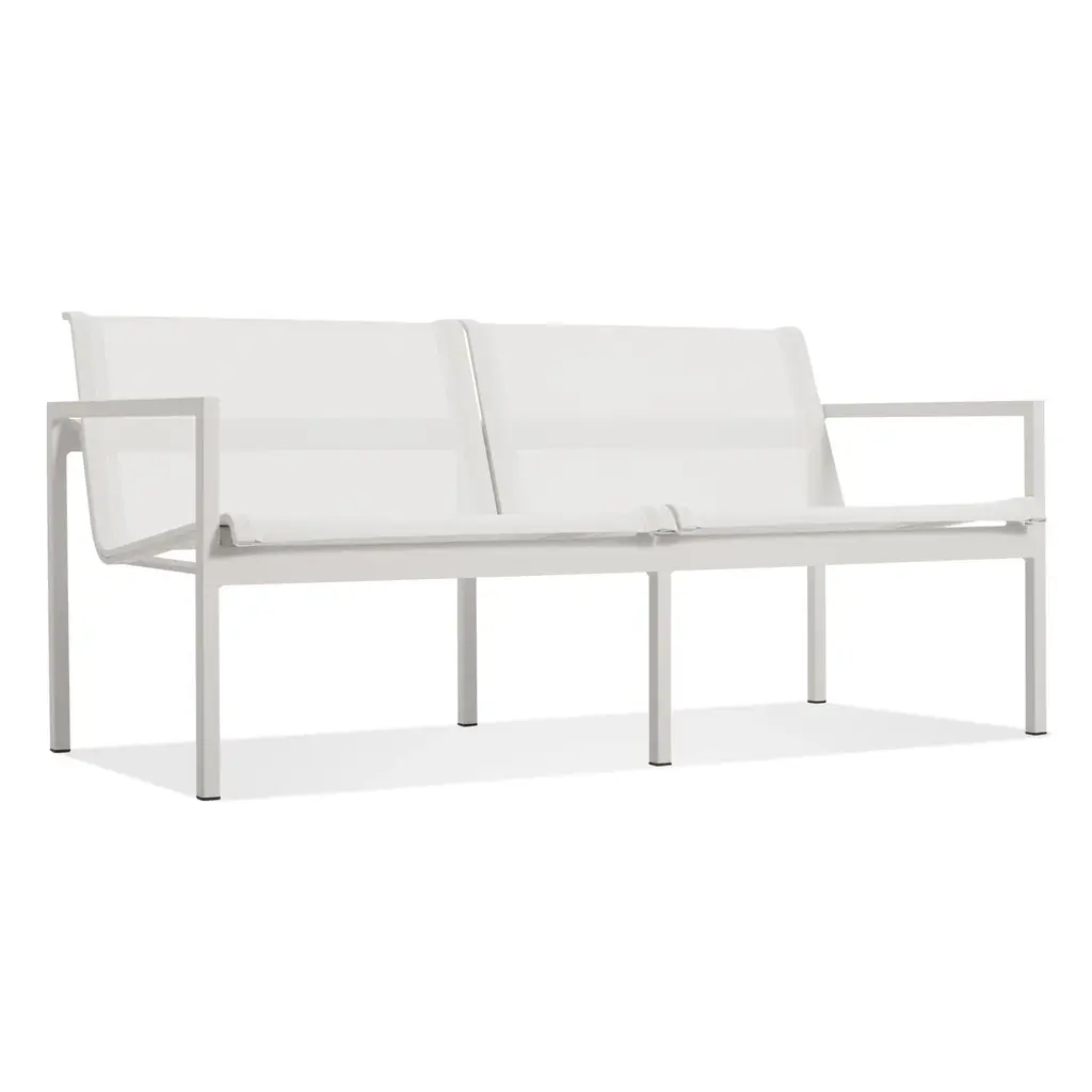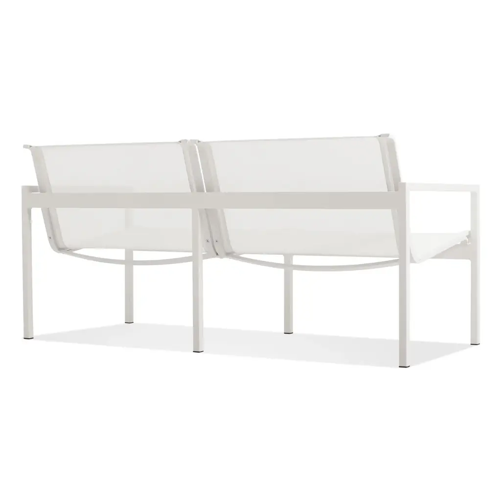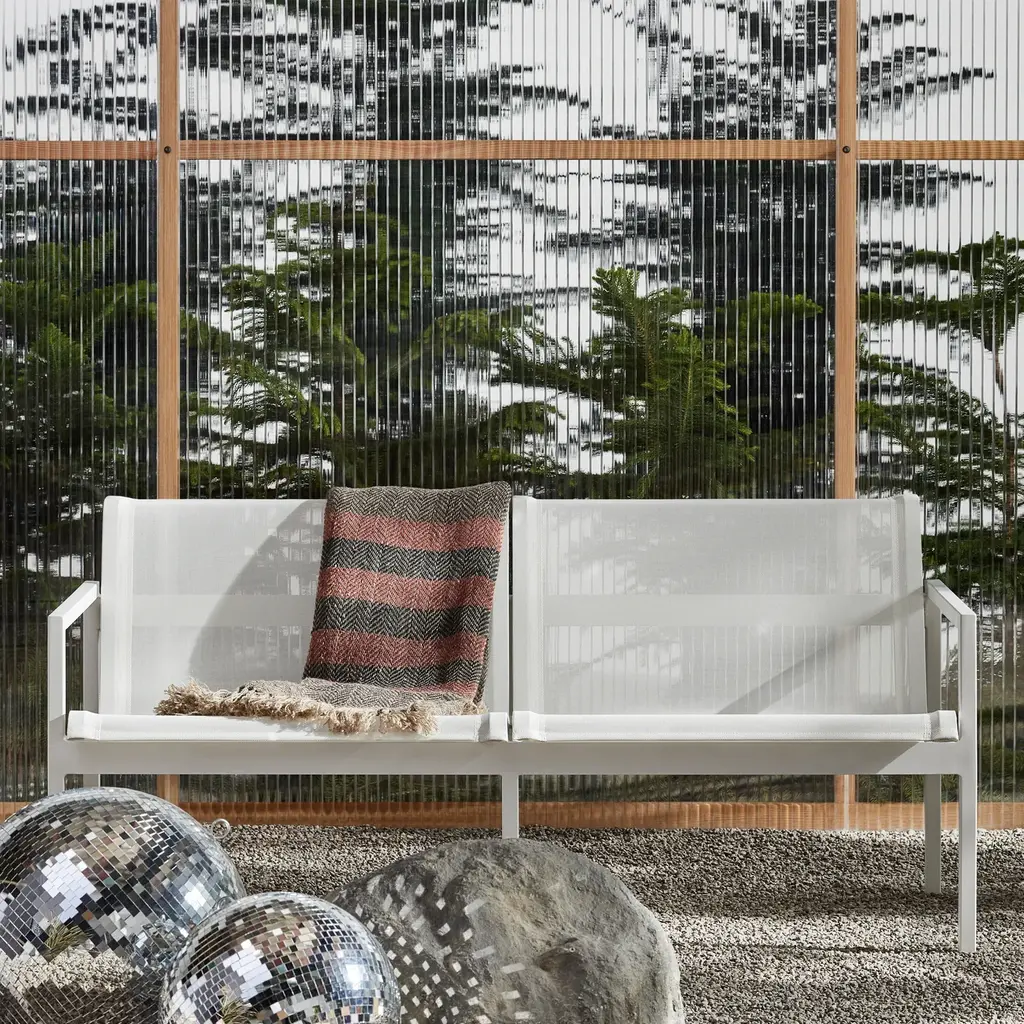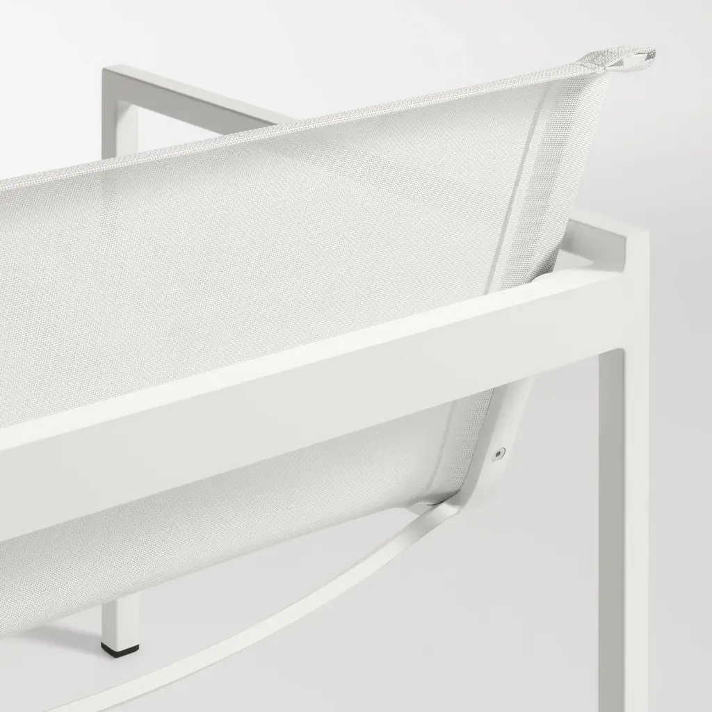 Crisp minimal powder-coated aluminum and Batyline textile. Clean lines designed to weather the elements.