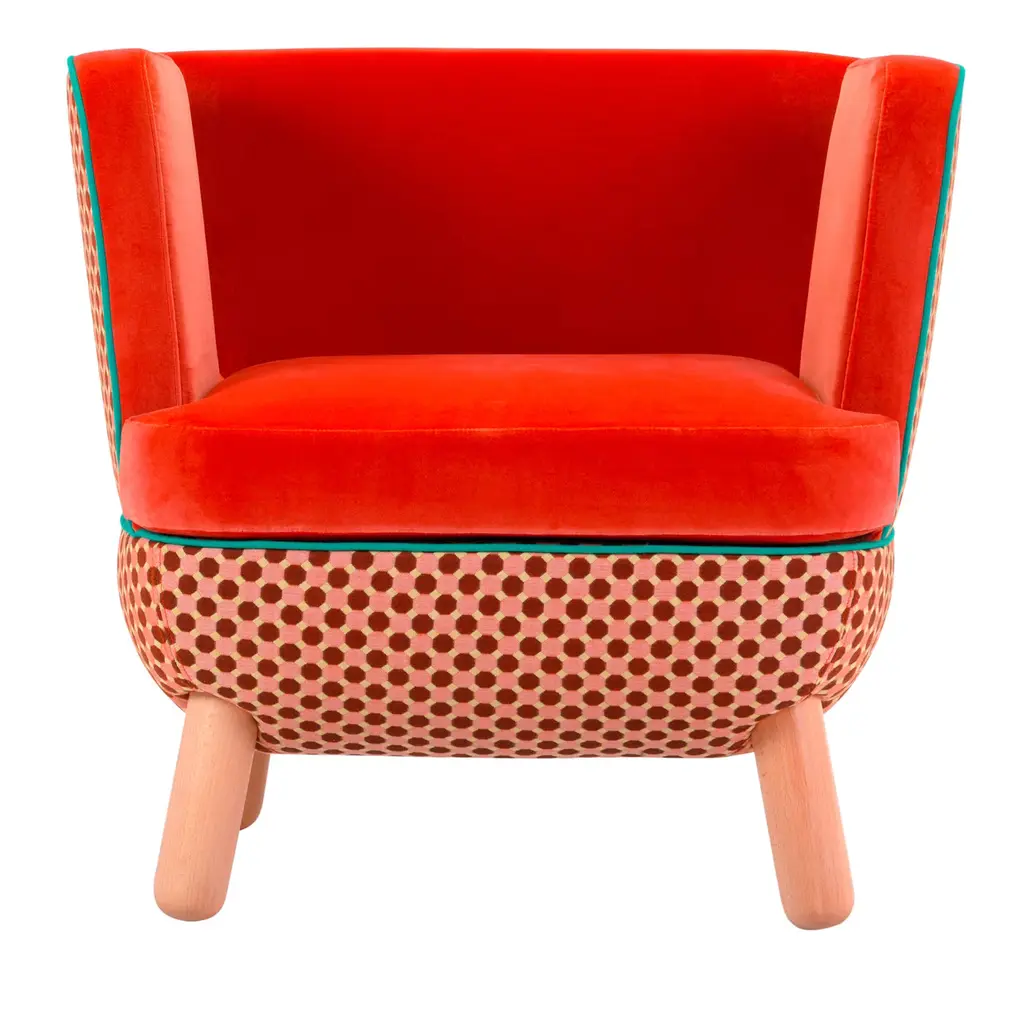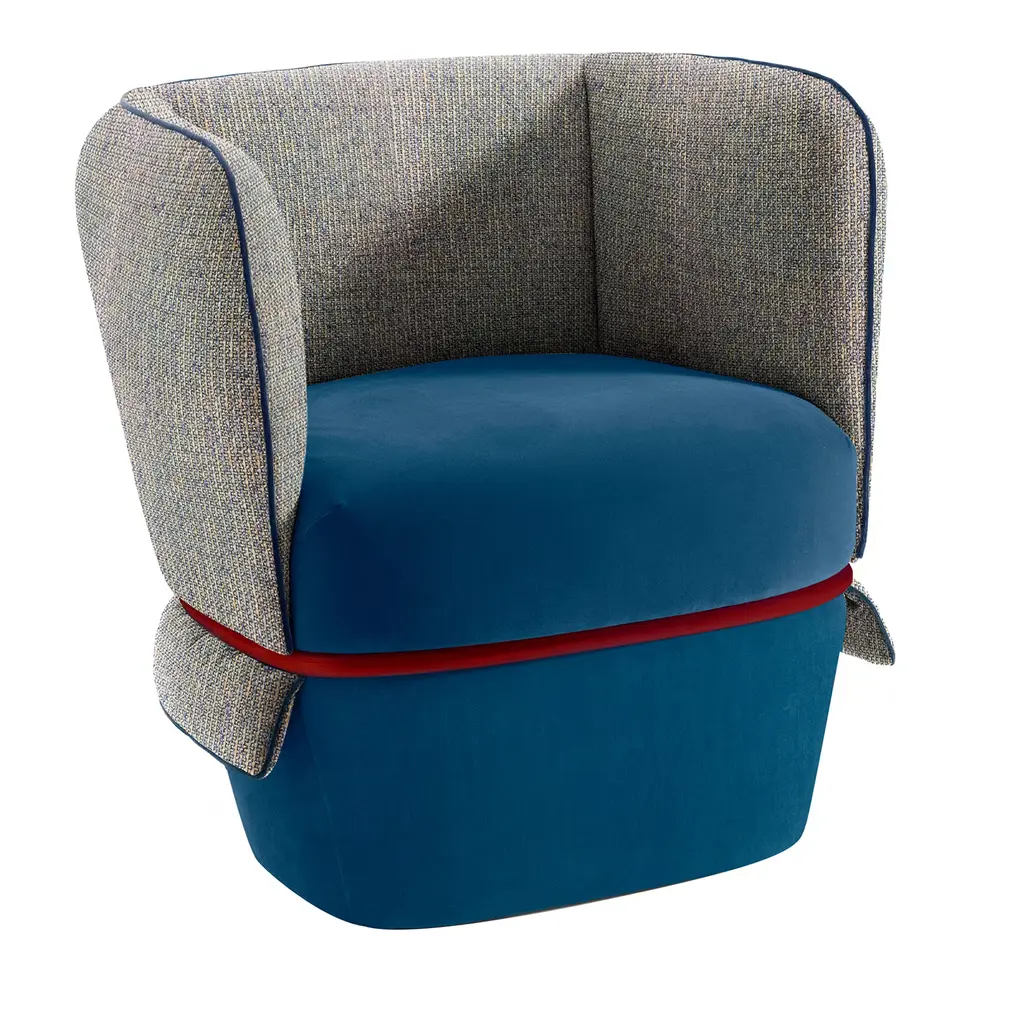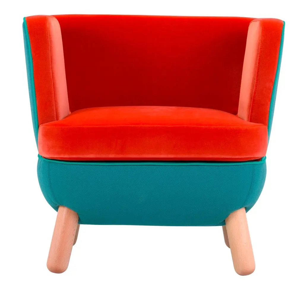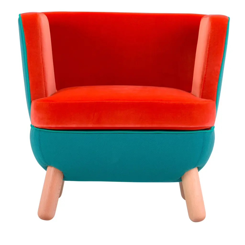 Perfect for any setting in the home or office, this sofa offers infinite possibilities for customization and combinations of upholstery, colors and finishes. The back, available in a high or low version, features slits closed with polypropylene cords of various colors. The legs in natural beech wood, also available in other finishes, match with the two-tone upholstery of the body, which is available in an array of colors.
