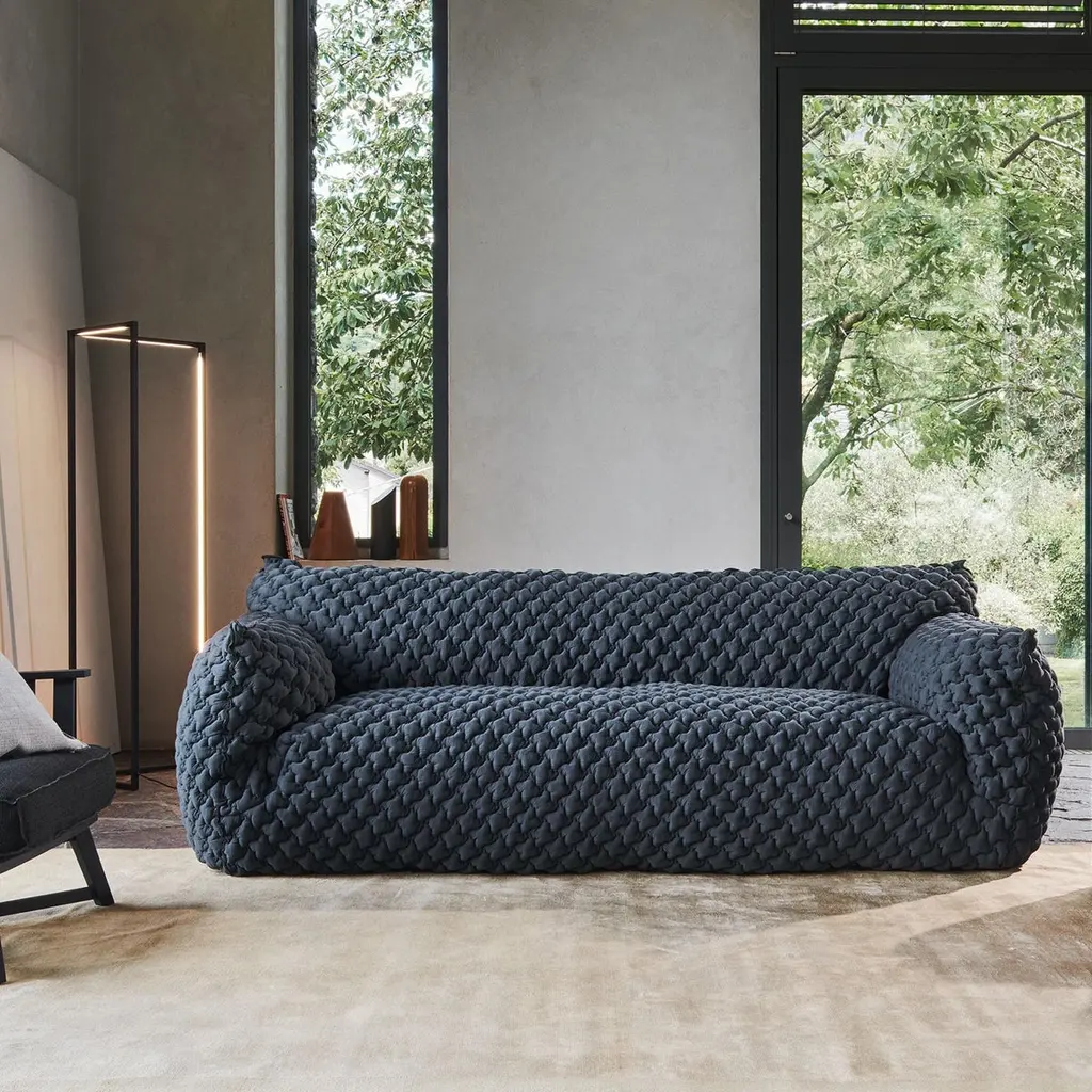 Gervasoni Nuvola 12 SofaDesign: Paola NavoneThe Nuvola collection is defined by its soft, inviting shapes that embody comfort and informality. The Nuvola 12 sofa encourages you to sink in: the high armrests embrace a deep seat, creating a true cocoon effect that feels like a warm hug.This sofa can be upholstered in a wide range of fabrics or leathers from the collection, allowing versatile customization to suit different interiors.The structure is padded with multi-density polyurethane foam for lasting comfort and durability. The upholstery includes a quilted layer filled with goose down and polyester fiber flakes, ensuring an extra-soft, luxurious feel.The cover is fully removable, with visible stitching that outlines the sofa's silhouette, blending functional versatility with relaxed elegance.DimensionsLength: 260 cm / 102.4 inDepth: 110 cm / 43.3 inHeight: 85 cm / 33.5 inSeat height: 48 cm / 18.9 inMaterials & FeaturesMulti-density polyurethane foam paddingQuilted upholstery with goose down and polyester fiber flakesFully removable cover with visible stitchingUpholstery available in all fabrics and leathers from the Nuvola collectionConceptThe Nuvola 12 sofa combines generous proportions, enveloping comfort, and casual elegance. With its 260 cm length, it offers a spacious seating experience while retaining the cocoon-like softness and timeless comfort envisioned by Paola Navone.