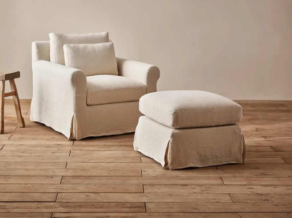 Sofa model “Ander”Side Gallery editionManufactured by Side GalleryBarcelona, 2018Wood frame, linen upholsteryMeasurements:Armchair78 cm x 114 cm x 75 H cm30.70 in x 44.88 in x 29.52 H inStool72 cm diameter x 50 height cm28.34 in diameter x 19.68 height inDetails:Customizable upon request for colors and dimensions.