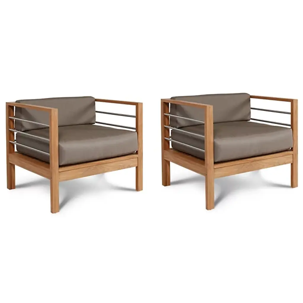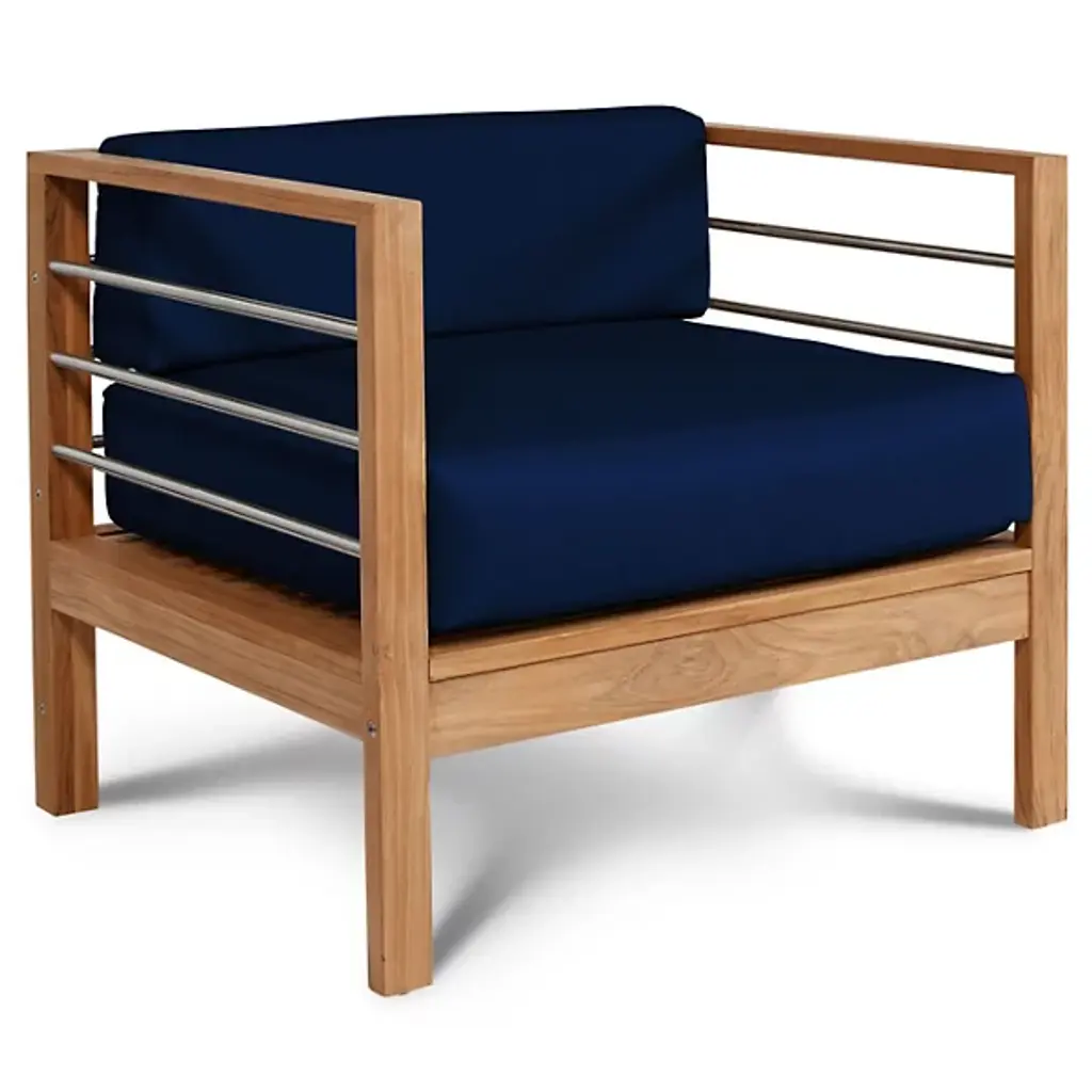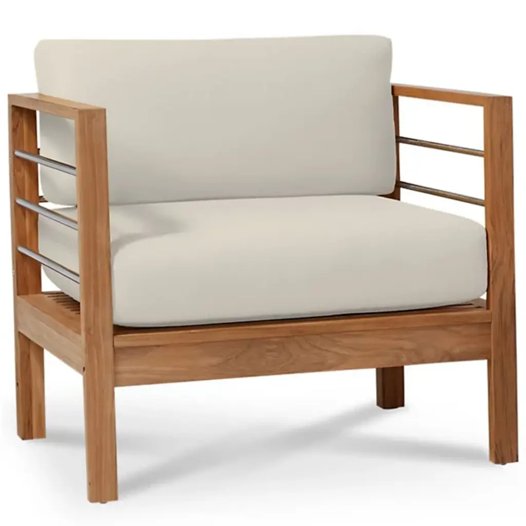 The SoHo 4-Piece Outdoor Deep Seating Sofa Set from HiTeak Furniture is both pleasant on the eyes and on the body as a clean, airy design. The set’s geometry matches up with the straight edges of the contemporary home. Its seating gets the eyes scanning in every direction with sharp lines made from both teak wood and steel. The teak wood foundation stands the forces of mother nature for year-round use. Deep cushions hug the back and the lower body to offer a true lounging experience. Subrella fabric wrapping the cushions keeps its color and soft feel even after bouts in the sun. The table provided takes in plenty of refreshments over its elegant linear design.