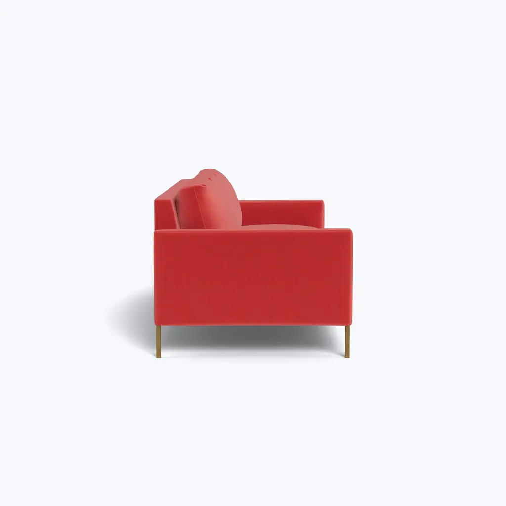 The 91" Soho Sofa, exclusively from ABC Carpet & Home, embodies the chic sophistication and modern elegance of New York’s trendy Soho neighborhood. Its sleek, low-profile design and spacious bench seat make it a standout centerpiece for any living room, adding an upscale touch to your home. Available with either brass or steel legs, the Soho Sofa offers a customizable look that complements a range of interior styles, from contemporary to modern. Built with sustainability in mind, the Soho Sofa is constructed on a durable, eco-conscious Goodwood frame. The cushion cores are made from eco-friendly foam derived from sustainable, plant-based materials and wrapped in a soft blend of feather and down, offering an unparalleled seating experience that balances comfort with firm support. This thoughtful combination ensures that the sofa is not only stylish but also incredibly comfortable for everyday lounging or entertaining guests. Choose from our in-stock fabrics or select from over 80+ custom fabric options. Whether you opt for bold jewel-tone velvets like Vance to create a striking focal point, durable performance fabrics for pet- and family-friendly use, or elevate the design with Libico linen for a sleek, refined look, this sofa can be tailored to your specific style and needs. Handcrafted to perfection, the Soho Sofa will be delivered to your home within 8-10 weeks, providing a seamless, high-quality experience from start to finish. Designed to fit effortlessly into a variety of living spaces, the 91" Soho Sofa is ideal for those who value both style and practicality. Its clean lines, generous seating, and customizable features make it a versatile piece that works equally well in large, open living rooms or more intimate spaces. Complete the look by pairing the 91" Soho Sofa with other pieces from the Soho collection, such as the lounge chair or the 64" loveseat. The collection offers endless possibilities for creating a cohesive, modern living area that reflects your personal style and delivers the ultimate in comfort and design