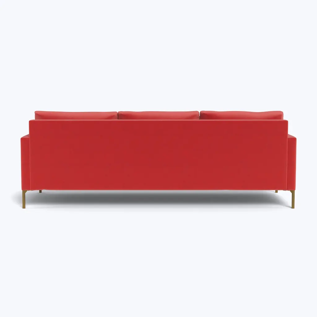 The 91" Soho Sofa, exclusively from ABC Carpet & Home, embodies the chic sophistication and modern elegance of New York’s trendy Soho neighborhood. Its sleek, low-profile design and spacious bench seat make it a standout centerpiece for any living room, adding an upscale touch to your home. Available with either brass or steel legs, the Soho Sofa offers a customizable look that complements a range of interior styles, from contemporary to modern. Built with sustainability in mind, the Soho Sofa is constructed on a durable, eco-conscious Goodwood frame. The cushion cores are made from eco-friendly foam derived from sustainable, plant-based materials and wrapped in a soft blend of feather and down, offering an unparalleled seating experience that balances comfort with firm support. This thoughtful combination ensures that the sofa is not only stylish but also incredibly comfortable for everyday lounging or entertaining guests. Choose from our in-stock fabrics or select from over 80+ custom fabric options. Whether you opt for bold jewel-tone velvets like Vance to create a striking focal point, durable performance fabrics for pet- and family-friendly use, or elevate the design with Libico linen for a sleek, refined look, this sofa can be tailored to your specific style and needs. Handcrafted to perfection, the Soho Sofa will be delivered to your home within 8-10 weeks, providing a seamless, high-quality experience from start to finish. Designed to fit effortlessly into a variety of living spaces, the 91" Soho Sofa is ideal for those who value both style and practicality. Its clean lines, generous seating, and customizable features make it a versatile piece that works equally well in large, open living rooms or more intimate spaces. Complete the look by pairing the 91" Soho Sofa with other pieces from the Soho collection, such as the lounge chair or the 64" loveseat. The collection offers endless possibilities for creating a cohesive, modern living area that reflects your personal style and delivers the ultimate in comfort and design