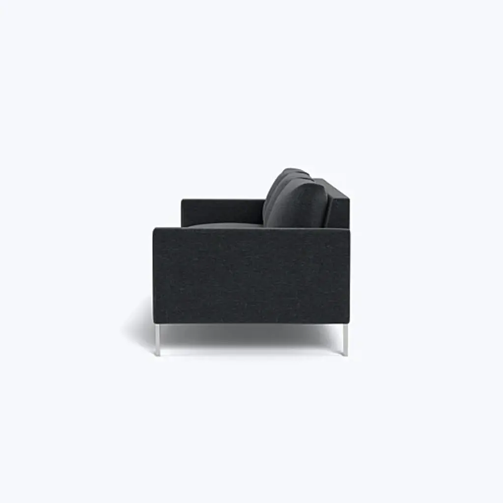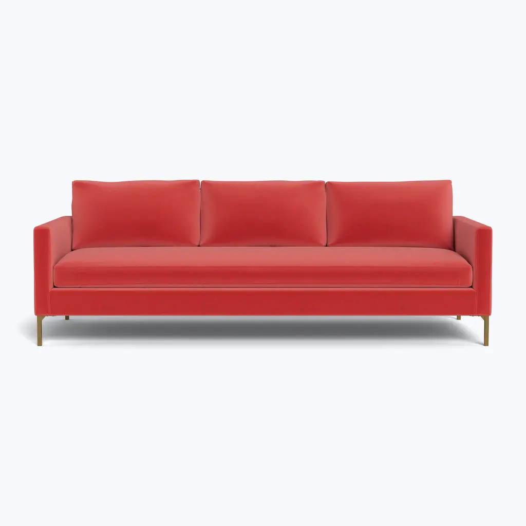 The 91" Soho Sofa, exclusively from ABC Carpet & Home, embodies the chic sophistication and modern elegance of New York’s trendy Soho neighborhood. Its sleek, low-profile design and spacious bench seat make it a standout centerpiece for any living room, adding an upscale touch to your home. Available with either brass or steel legs, the Soho Sofa offers a customizable look that complements a range of interior styles, from contemporary to modern. Built with sustainability in mind, the Soho Sofa is constructed on a durable, eco-conscious Goodwood frame. The cushion cores are made from eco-friendly foam derived from sustainable, plant-based materials and wrapped in a soft blend of feather and down, offering an unparalleled seating experience that balances comfort with firm support. This thoughtful combination ensures that the sofa is not only stylish but also incredibly comfortable for everyday lounging or entertaining guests. Choose from our in-stock fabrics or select from over 80+ custom fabric options. Whether you opt for bold jewel-tone velvets like Vance to create a striking focal point, durable performance fabrics for pet- and family-friendly use, or elevate the design with Libico linen for a sleek, refined look, this sofa can be tailored to your specific style and needs. Handcrafted to perfection, the Soho Sofa will be delivered to your home within 8-10 weeks, providing a seamless, high-quality experience from start to finish. Designed to fit effortlessly into a variety of living spaces, the 91" Soho Sofa is ideal for those who value both style and practicality. Its clean lines, generous seating, and customizable features make it a versatile piece that works equally well in large, open living rooms or more intimate spaces. Complete the look by pairing the 91" Soho Sofa with other pieces from the Soho collection, such as the lounge chair or the 64" loveseat. The collection offers endless possibilities for creating a cohesive, modern living area that reflects your personal style and delivers the ultimate in comfort and design