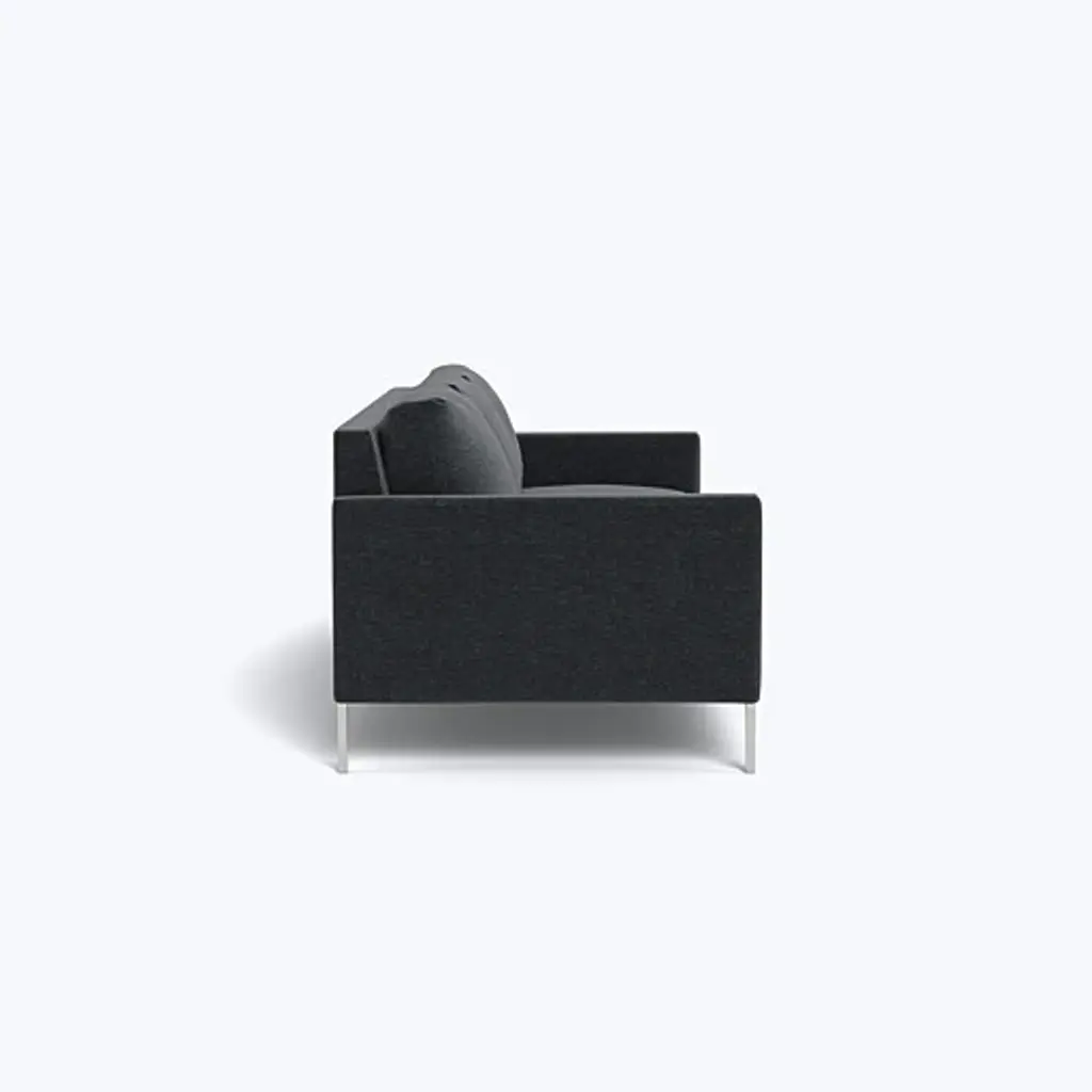 The 91" Soho Sofa, exclusively from ABC Carpet & Home, embodies the chic sophistication and modern elegance of New York’s trendy Soho neighborhood. Its sleek, low-profile design and spacious bench seat make it a standout centerpiece for any living room, adding an upscale touch to your home. Available with either brass or steel legs, the Soho Sofa offers a customizable look that complements a range of interior styles, from contemporary to modern. Built with sustainability in mind, the Soho Sofa is constructed on a durable, eco-conscious Goodwood frame. The cushion cores are made from eco-friendly foam derived from sustainable, plant-based materials and wrapped in a soft blend of feather and down, offering an unparalleled seating experience that balances comfort with firm support. This thoughtful combination ensures that the sofa is not only stylish but also incredibly comfortable for everyday lounging or entertaining guests. Choose from our in-stock fabrics or select from over 80+ custom fabric options. Whether you opt for bold jewel-tone velvets like Vance to create a striking focal point, durable performance fabrics for pet- and family-friendly use, or elevate the design with Libico linen for a sleek, refined look, this sofa can be tailored to your specific style and needs. Handcrafted to perfection, the Soho Sofa will be delivered to your home within 8-10 weeks, providing a seamless, high-quality experience from start to finish. Designed to fit effortlessly into a variety of living spaces, the 91" Soho Sofa is ideal for those who value both style and practicality. Its clean lines, generous seating, and customizable features make it a versatile piece that works equally well in large, open living rooms or more intimate spaces. Complete the look by pairing the 91" Soho Sofa with other pieces from the Soho collection, such as the lounge chair or the 64" loveseat. The collection offers endless possibilities for creating a cohesive, modern living area that reflects your personal style and delivers the ultimate in comfort and design