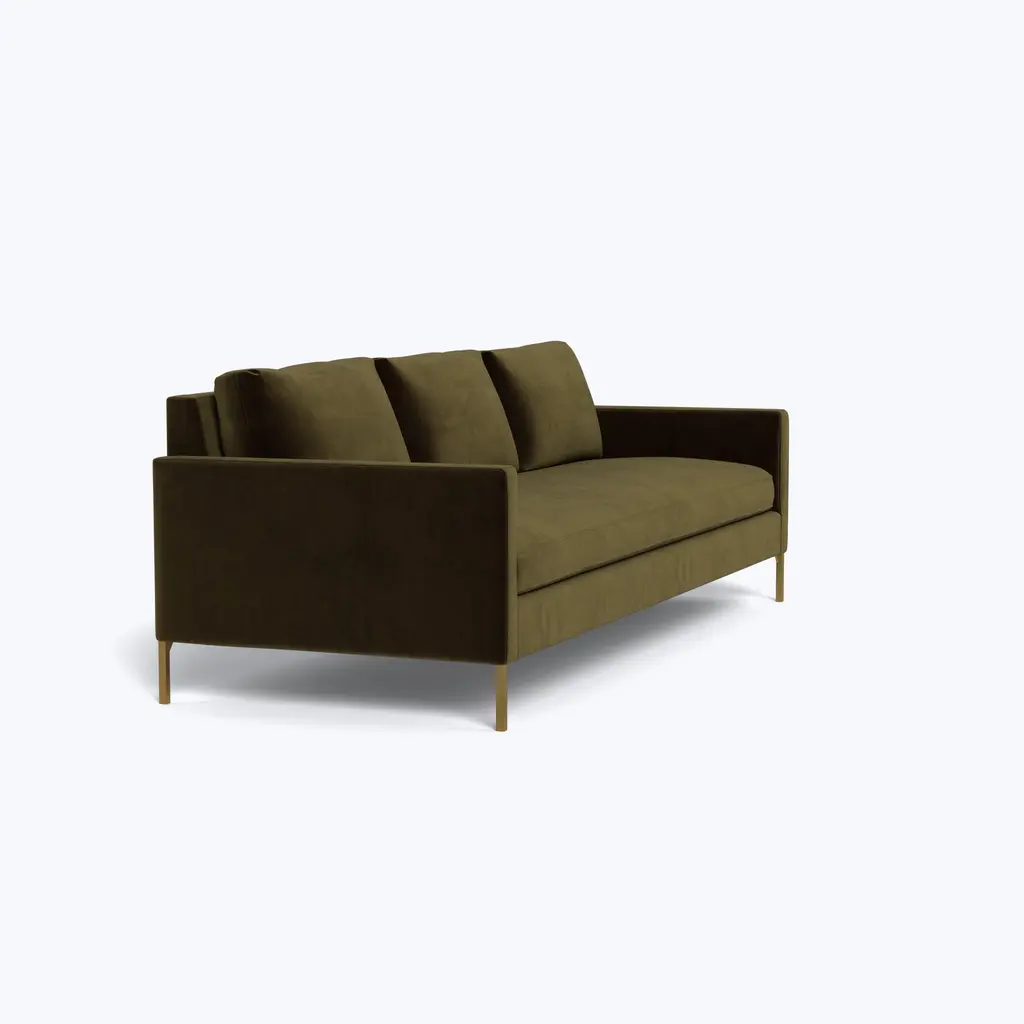 The 91" Soho Sofa, exclusively from ABC Carpet & Home, embodies the chic sophistication and modern elegance of New York’s trendy Soho neighborhood. Its sleek, low-profile design and spacious bench seat make it a standout centerpiece for any living room, adding an upscale touch to your home. Available with either brass or steel legs, the Soho Sofa offers a customizable look that complements a range of interior styles, from contemporary to modern. Built with sustainability in mind, the Soho Sofa is constructed on a durable, eco-conscious Goodwood frame. The cushion cores are made from eco-friendly foam derived from sustainable, plant-based materials and wrapped in a soft blend of feather and down, offering an unparalleled seating experience that balances comfort with firm support. This thoughtful combination ensures that the sofa is not only stylish but also incredibly comfortable for everyday lounging or entertaining guests. Choose from our in-stock fabrics or select from over 80+ custom fabric options. Whether you opt for bold jewel-tone velvets like Vance to create a striking focal point, durable performance fabrics for pet- and family-friendly use, or elevate the design with Libico linen for a sleek, refined look, this sofa can be tailored to your specific style and needs. Handcrafted to perfection, the Soho Sofa will be delivered to your home within 8-10 weeks, providing a seamless, high-quality experience from start to finish. Designed to fit effortlessly into a variety of living spaces, the 91" Soho Sofa is ideal for those who value both style and practicality. Its clean lines, generous seating, and customizable features make it a versatile piece that works equally well in large, open living rooms or more intimate spaces. Complete the look by pairing the 91" Soho Sofa with other pieces from the Soho collection, such as the lounge chair or the 64" loveseat. The collection offers endless possibilities for creating a cohesive, modern living area that reflects your personal style and delivers the ultimate in comfort and design