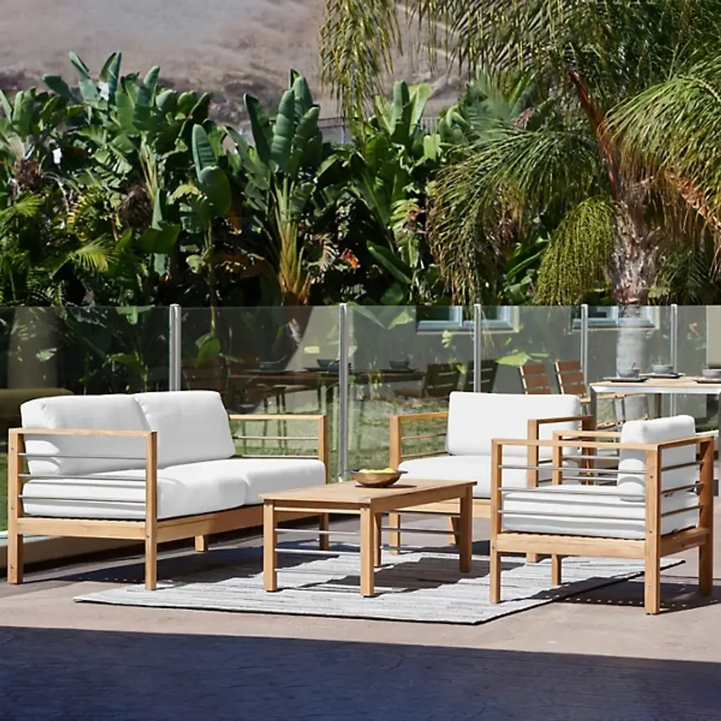 Clean, breathable, cozy. The SoHo Teak Outdoor Sofa from HiTeak Furniture outlines one’s figure with modern lines crafted in enduring materials. The sofa creates harmony with the modern home’s architecture through its sharp perpendicular angles. Steel bars along the side accentuate this sharpness with metallic notes. The teak wood framework continues the sharp aesthetic while mellowing it out through its deep texture and rich, warm hues. Both the teak wood and the cushion wraps sport weather-resistant properties for year-round use. The cushions offer great support from top to bottom in their plump forms.