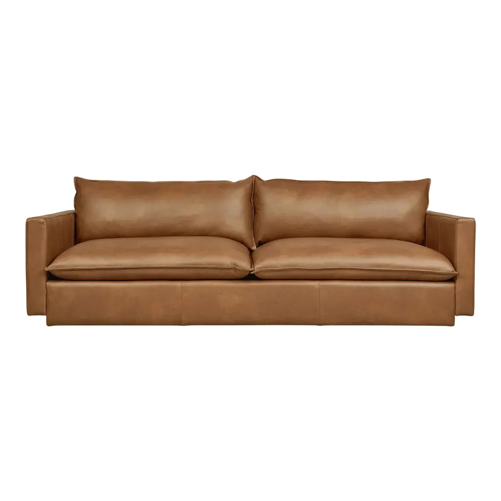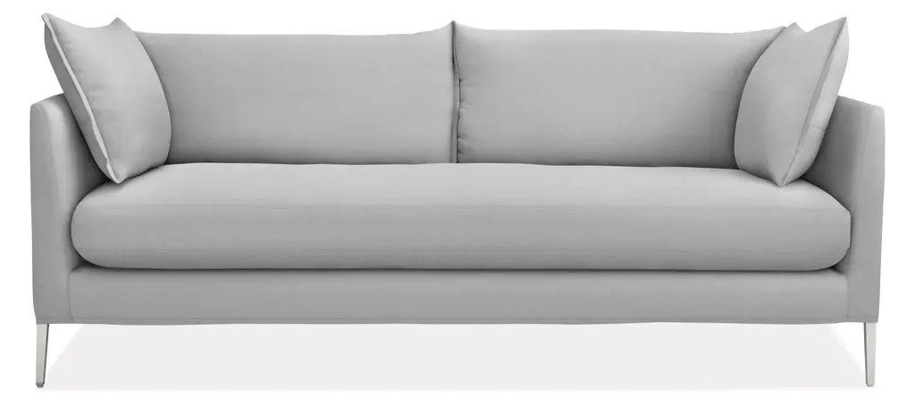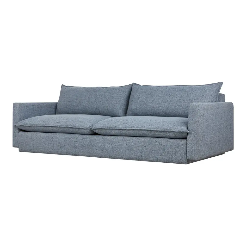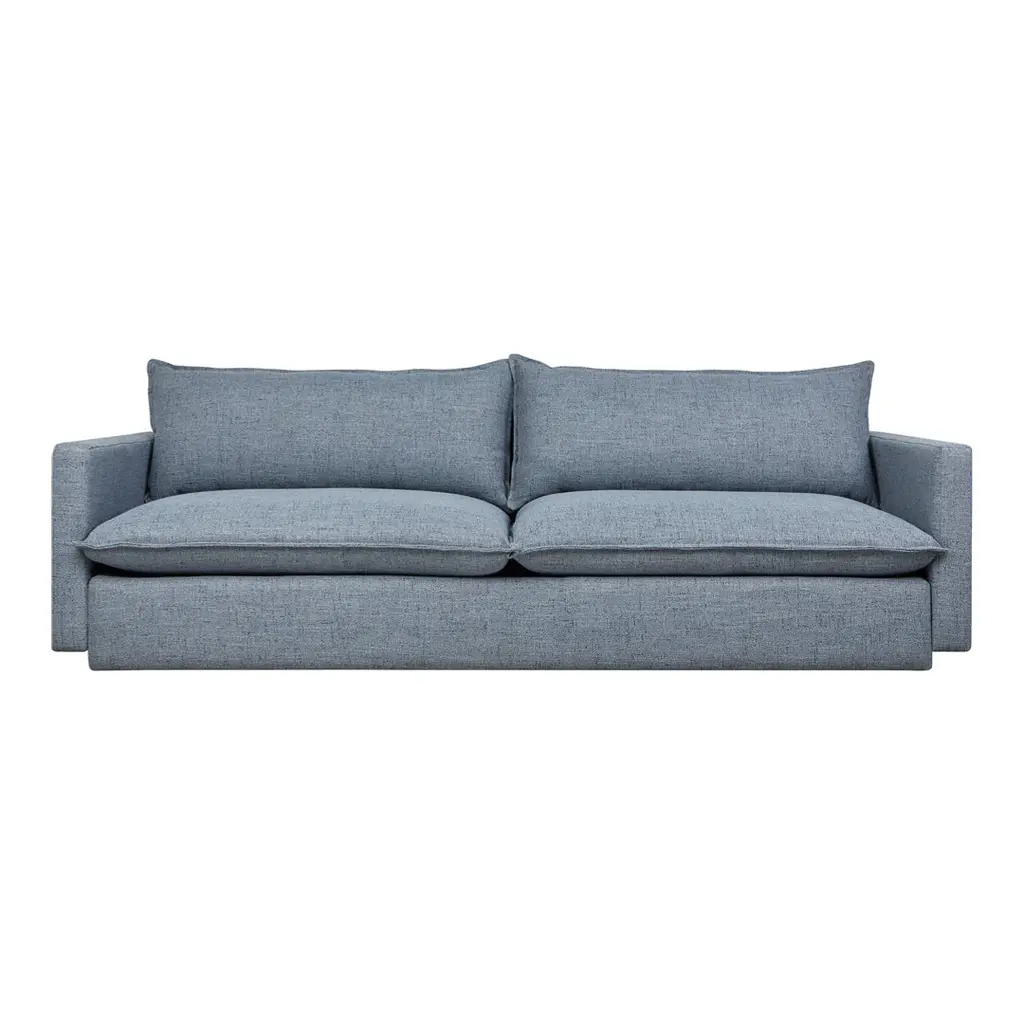 The cloud-like Sola Sofa is an open invitation to lounge. Embodying the ease of coastal living in a design inspired equally by contemporary Italian design and mid-century classics, Sola is perfect for entertaining or enjoying an afternoon siesta. A plush, expansive seating area, and back cushions filled with our signature, eco-friendly PET fill (made from recycled plastic spun into billowy, synthetic down) means an extra cozy experience. French-seam detailing, stepped arms, and inset legs all subtly convey a feeling of weightlessness that will beckon you to sink in after a long day Reversible back cushions contain an eco-friendly, synthetic-down fill made from 378 recycled plastic water bottles. Reversible seat cushions are crafted with high resiliency medium density foam covered in a Dacron wrap. French-seam detailing on all seat and back cushions. Kiln-dried, hardwood inner frame with No‐Sag, sinuous spring suspension system. Inset, non-marking feet. All joints have been stress tested. Manufactured to comply with California Prop Phase 2 standards.