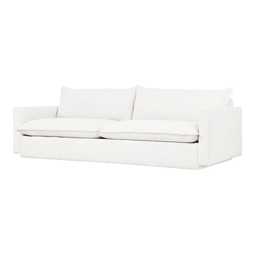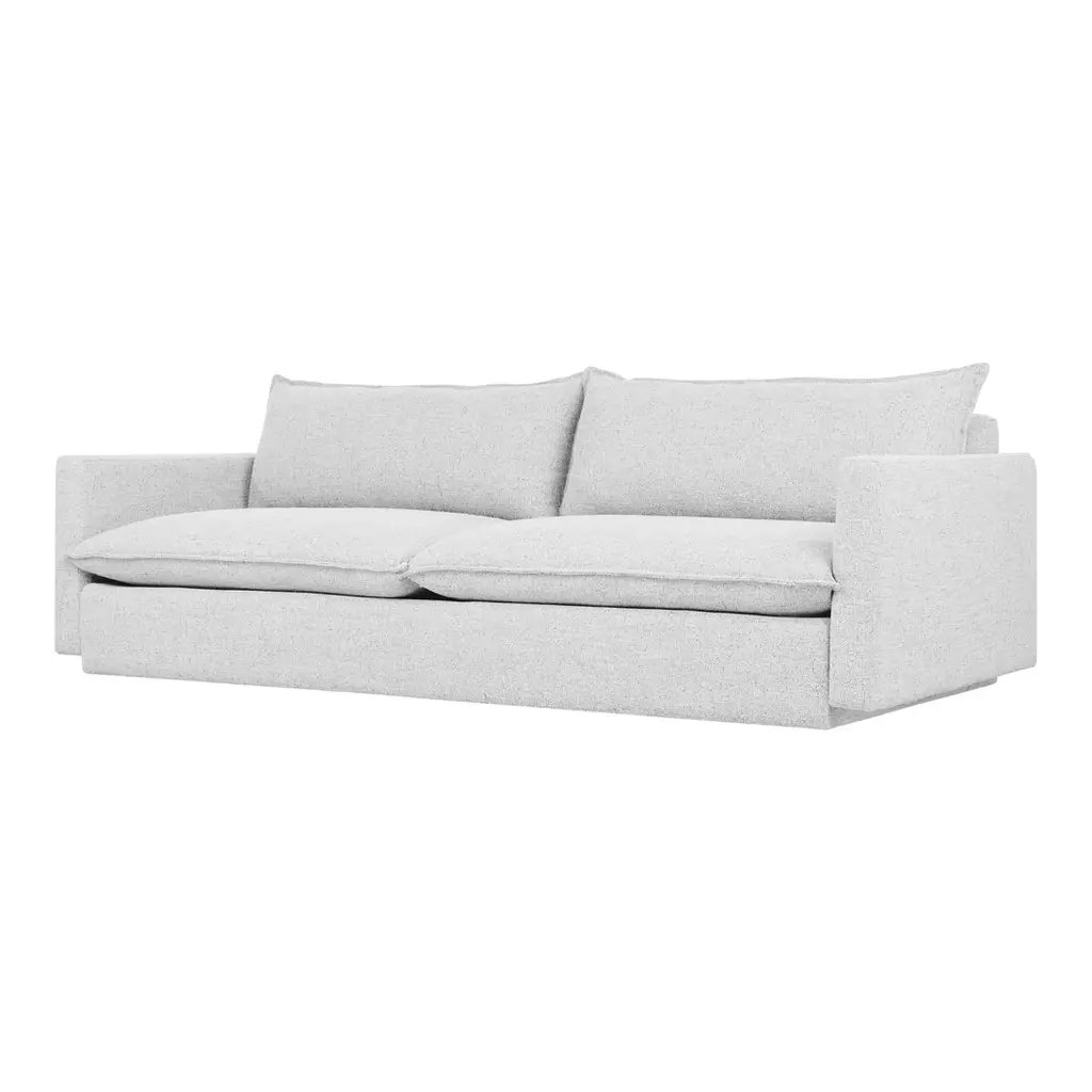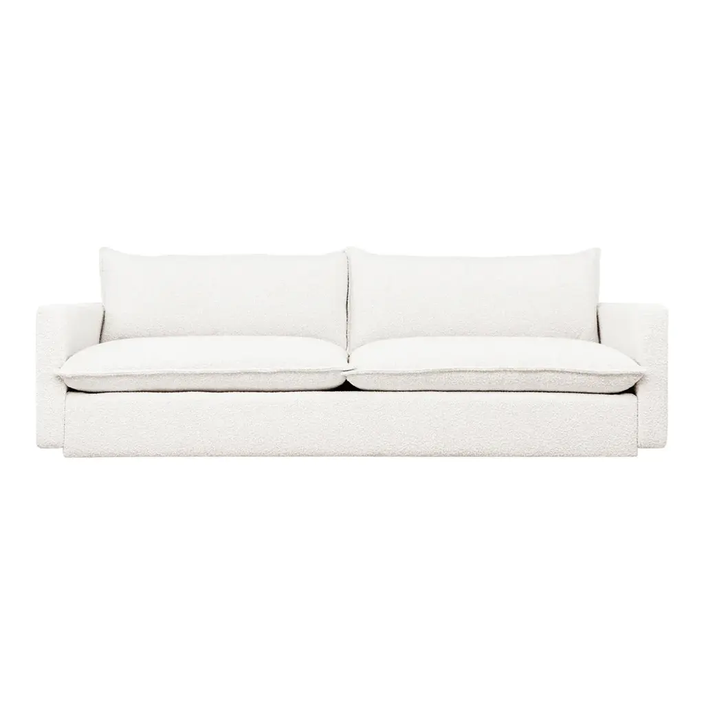 The cloud-like Sola Sofa is an open invitation to lounge. Embodying the ease of coastal living in a design inspired equally by contemporary Italian design and mid-century classics, Sola is perfect for entertaining or enjoying an afternoon siesta. A plush, expansive seating area, and back cushions filled with our signature, eco-friendly PET fill (made from recycled plastic spun into billowy, synthetic down) means an extra cozy experience. French-seam detailing, stepped arms, and inset legs all subtly convey a feeling of weightlessness that will beckon you to sink in after a long day Reversible back cushions contain an eco-friendly, synthetic-down fill made from 378 recycled plastic water bottles. Reversible seat cushions are crafted with high resiliency medium density foam covered in a Dacron wrap. French-seam detailing on all seat and back cushions. Kiln-dried, hardwood inner frame with No‐Sag, sinuous spring suspension system. Inset, non-marking feet. All joints have been stress tested. Manufactured to comply with California Prop Phase 2 standards.