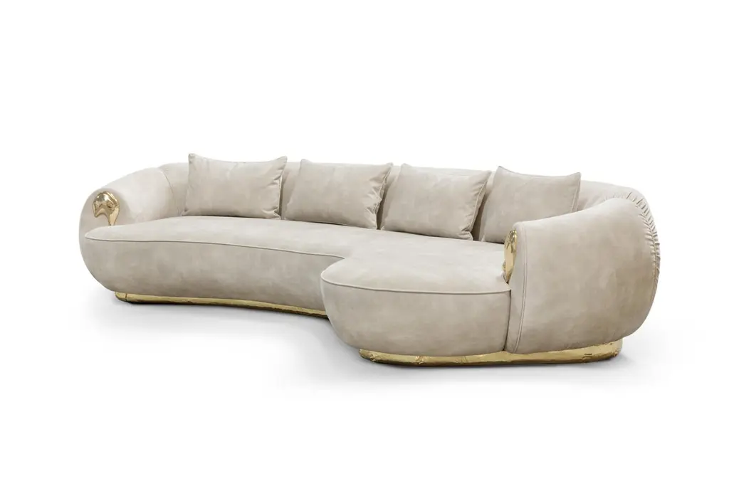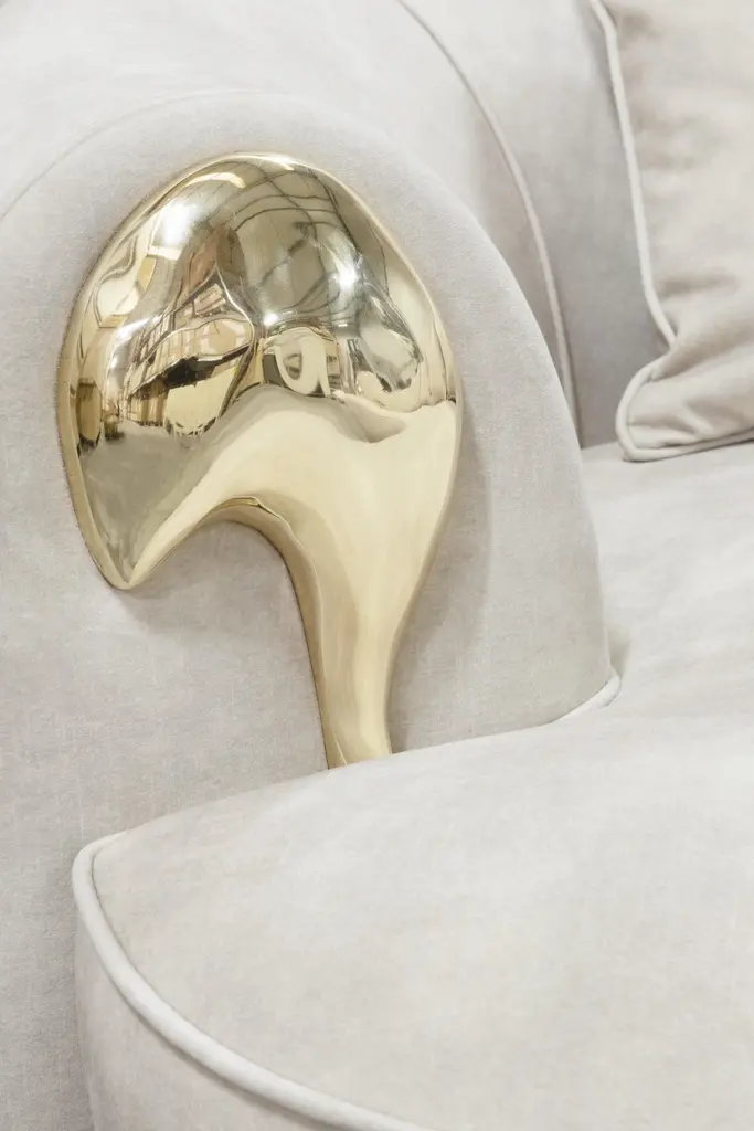 Soleil Curved Sofa - Hand-Polished Casted Brass & Fabric - Boca Do Lobo