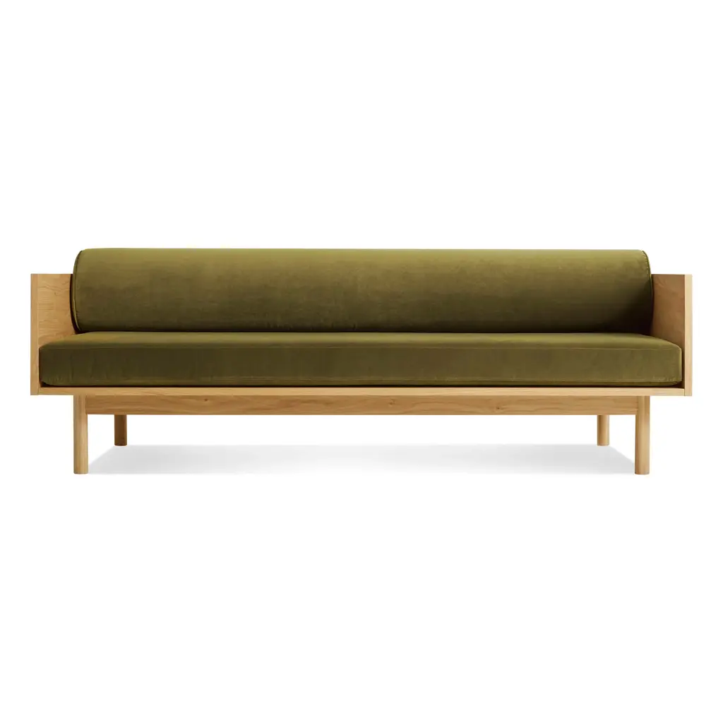 Instant Heirloom. Sofa and bookshelf come together to create an artful display of form and function. Solid wood makes for a dazzling surround while serving as a chic spot to show off your ephemera or rest your martini. A genteel booster provides ample support and a pleasing vintage vibe without the online auction. Features