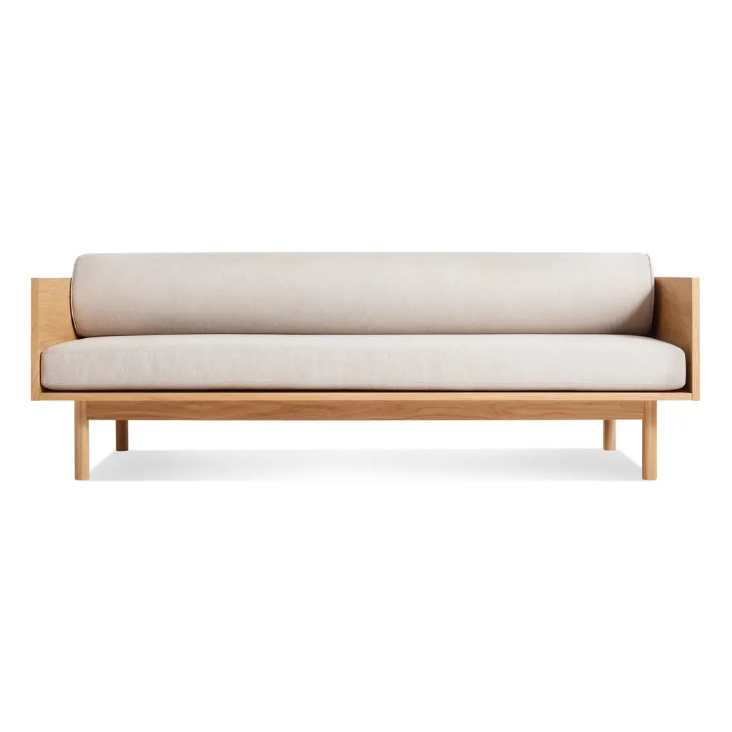 Instant Heirloom. Sofa and bookshelf come together to create an artful display of form and function. Solid wood makes for a dazzling surround while serving as a chic spot to show off your ephemera or rest your martini. A genteel booster provides ample support and a pleasing vintage vibe without the online auction. Features