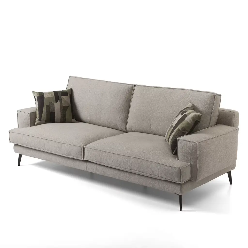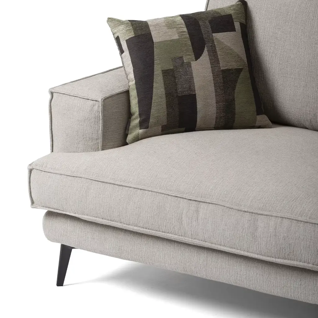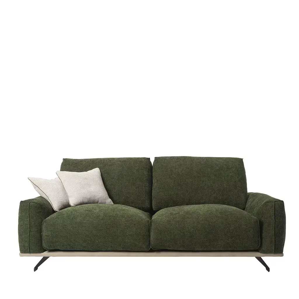 The Space sofa offers generous comfort in a compact design with a depth of 95 cm. Its elongated backrest provides optimal support, while the seat cushions and backrests, made of differentiated polyurethane and down, ensure superior comfort and ergonomics. Customizable double-stitched seams enhance its modern look. The armrests seamlessly blend with the structure for added style and functionality. Decorative cushions not included.