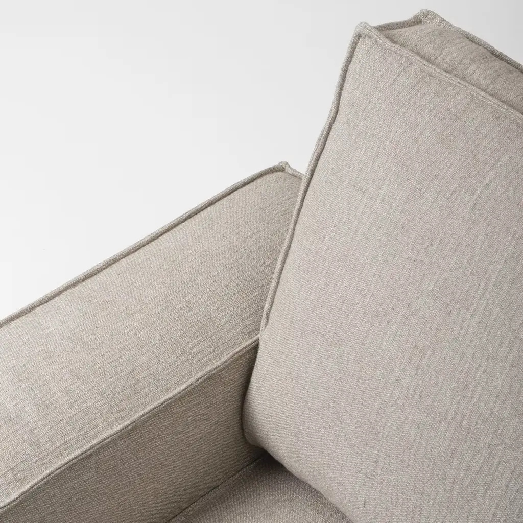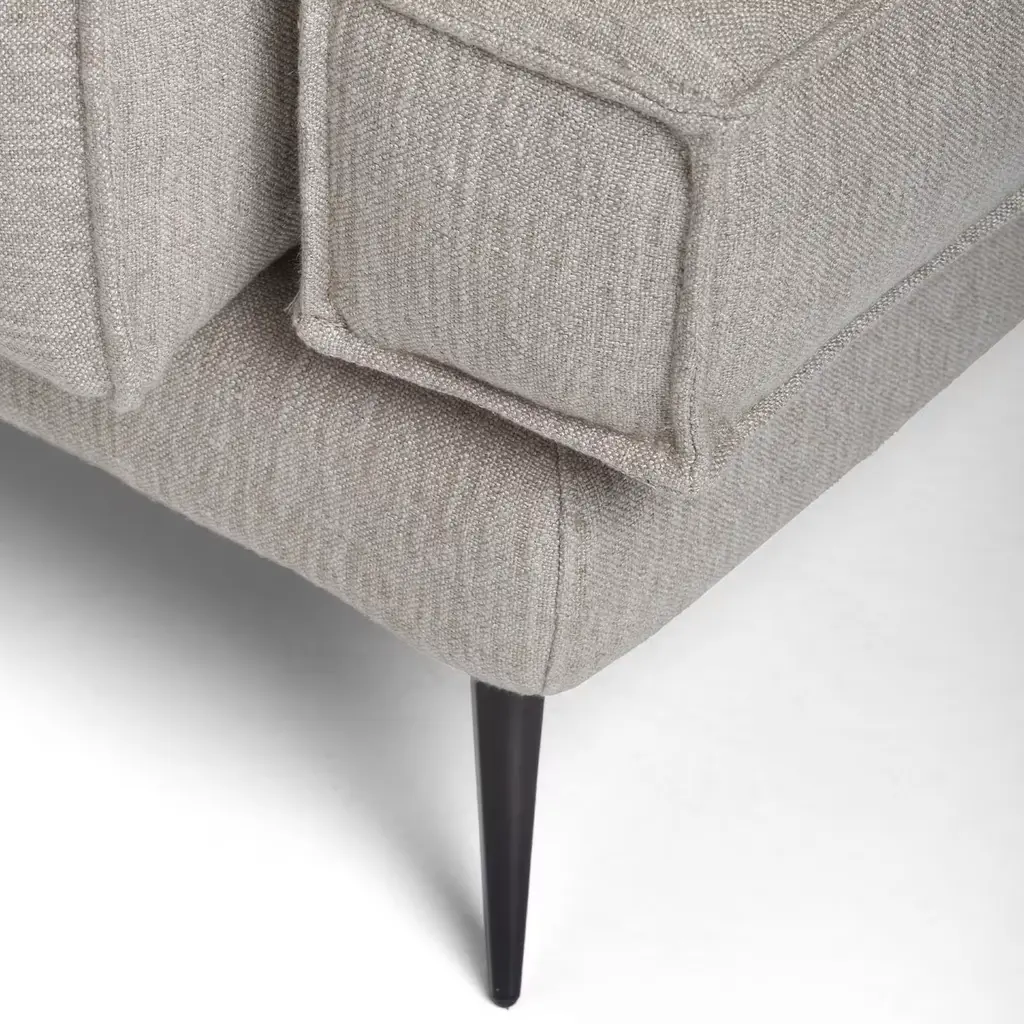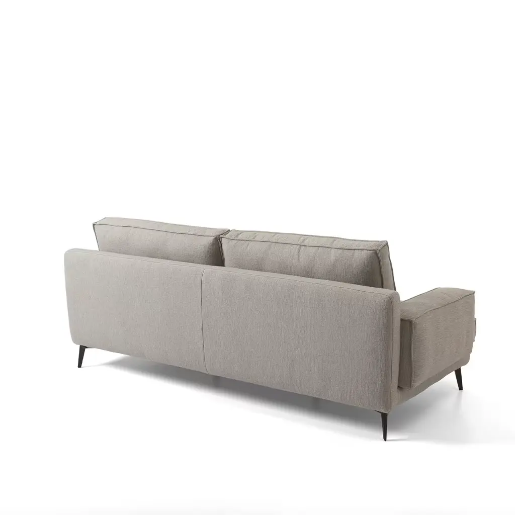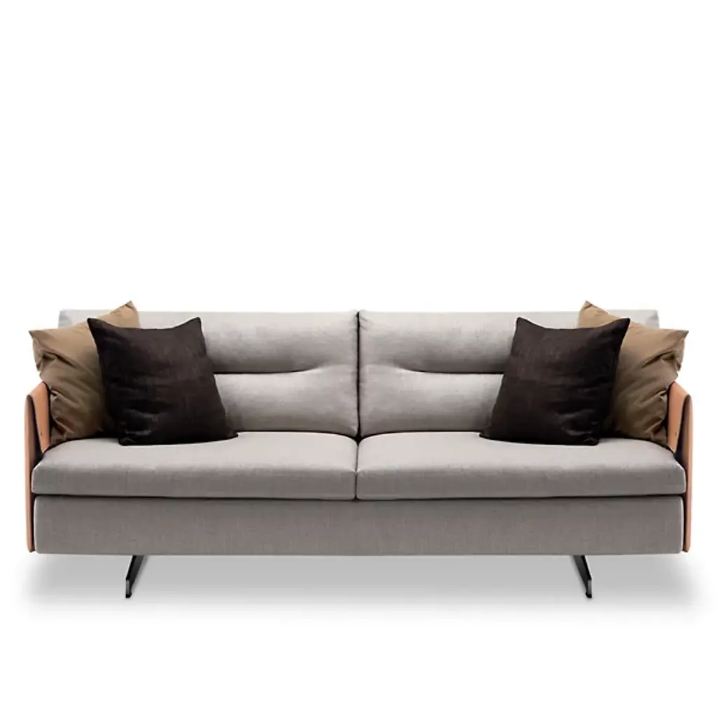 The Space sofa offers generous comfort in a compact design with a depth of 95 cm. Its elongated backrest provides optimal support, while the seat cushions and backrests, made of differentiated polyurethane and down, ensure superior comfort and ergonomics. Customizable double-stitched seams enhance its modern look. The armrests seamlessly blend with the structure for added style and functionality. Decorative cushions not included.
