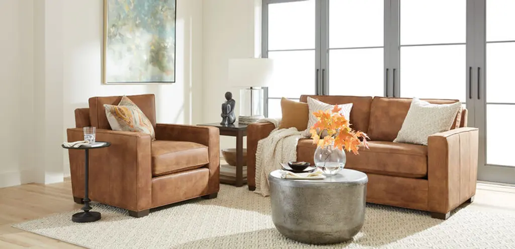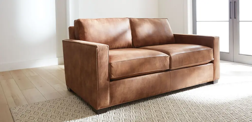 Relaxed, modern living, all wrapped up in the luxeness of leather. The Spencer leather track-arm sofa features crisp lines and a low, modern profile, all surrounding loose, lean-in back and seat cushions.