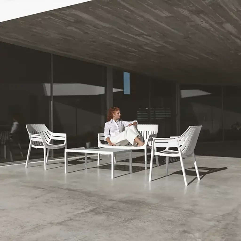 The Spritz Sofa by Vondom is a fresh addition to spaces with a structured composition that was inspired by the picturesque image of wooden fences lining the beach in a perfect geometric manner. Created by Archirivolto Design, this modern piece features a clean, minimalistic look. The soft silhouette and slatted build of this sofa is made from injected polypropylene with fiberglass to create a comfortable spot to sit that works well both indoors and out.
