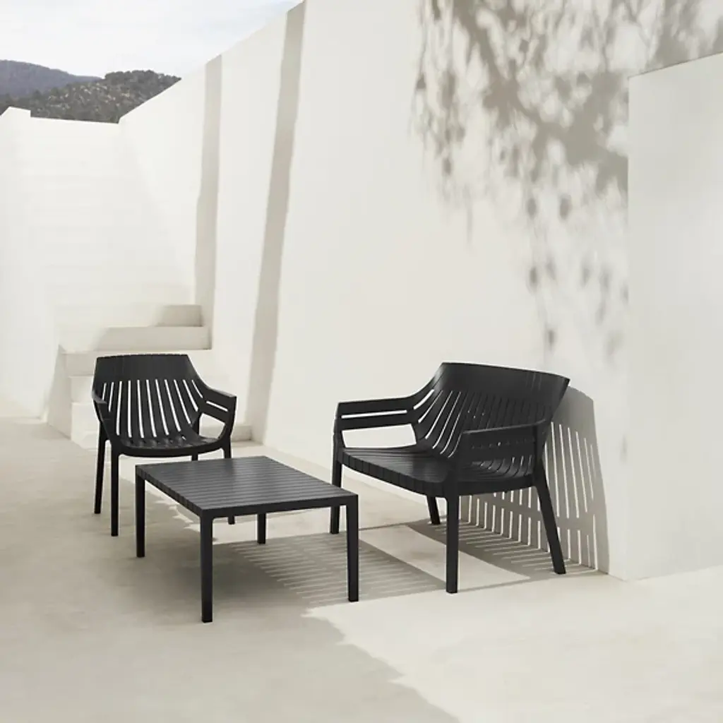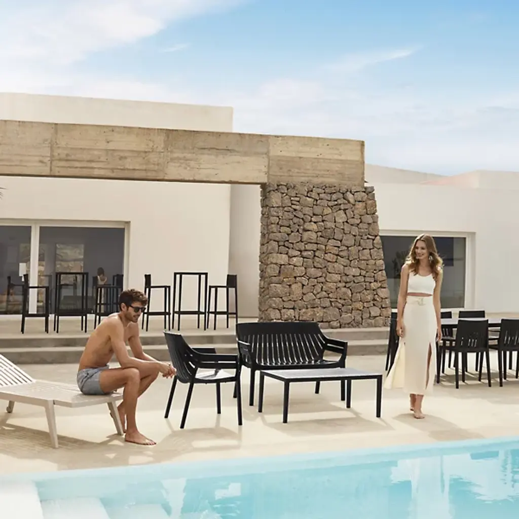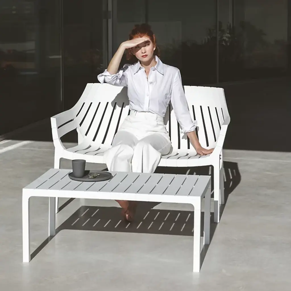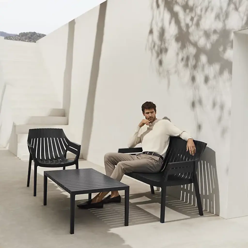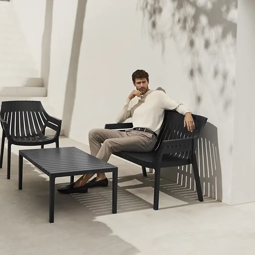 The Spritz Sofa by Vondom is a fresh addition to spaces with a structured composition that was inspired by the picturesque image of wooden fences lining the beach in a perfect geometric manner. Created by Archirivolto Design, this modern piece features a clean, minimalistic look. The soft silhouette and slatted build of this sofa is made from injected polypropylene with fiberglass to create a comfortable spot to sit that works well both indoors and out.
