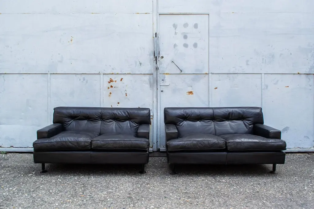 Two-seater sofa with leather upholstery and wooden feet. Model Square Designer Marco Zanuso Manufacturer Arflex Year 1962 This piece has an attribution mark, I am sure that it is completely authentic and take full responsibility for any authenticity issues arising from misattribution