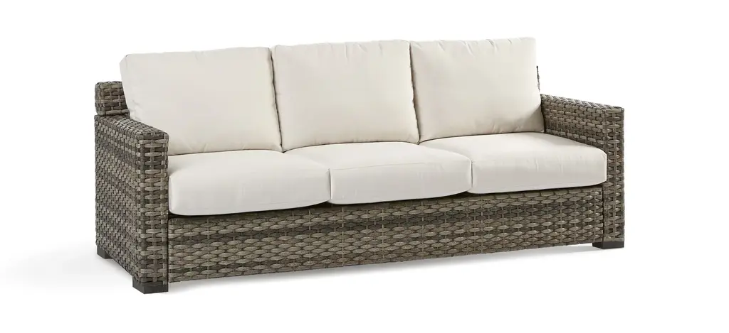 Timeless appeal meets a clean, modern aesthetic in the St Tropez Stn Outdoor Sofa . The perfectly proportioned Saint Tropez Collection features rustproof aluminum framing. Mold and mildew resistant cushion cores are layered, high-density poly fiber and dry conjugate blend. Each seat has an independent suspension. Crafted with high-density polyethylene synthetic wicker,handwoven over fully-welded powder-coated aluminum framing.