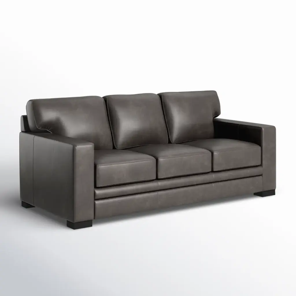 This leather armchair instantly elevates your living room or home office with a fresh take on a classic look. It's made with a kiln-dried solid pine wood frame that rests on block legs with a dark espresso finish. This chair is upholstered in genuine leather in a rich brown color, and it features square arms and a cushion back. The seat is filled with foam, and sinuous springs give you just the right amount of support and prevent sagging over time.