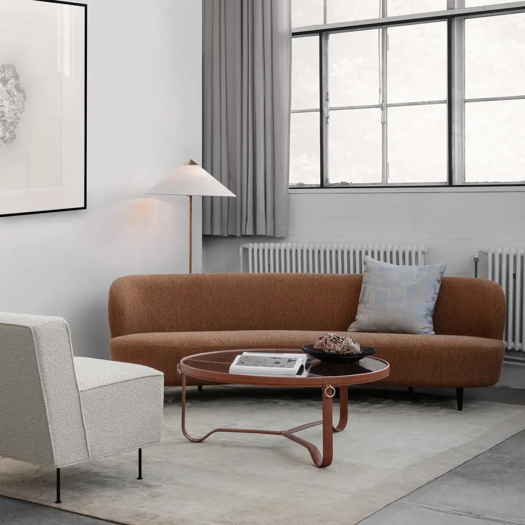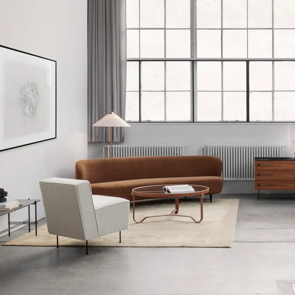 Resting aloft on its wooden legs, this iteration of Gubi’s rounded sofa makes a lighter-looking impression amid its environs. Stay by design duo Space Copenhagen offers generous proportions and embracing comfort just made to nestle into. Along with a wide selection of elevated upholstery materials there are also several wood choices for the legs—to combine for customized seating for both contract and residential spaces.