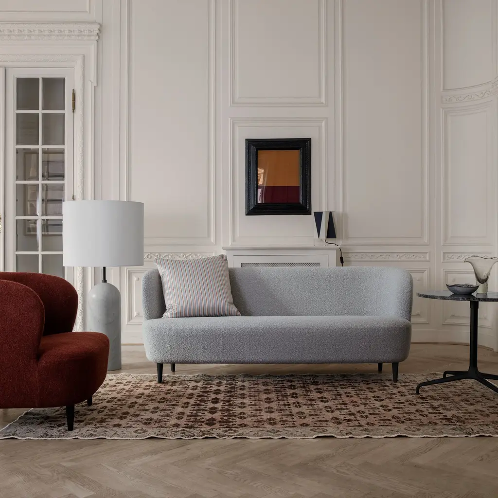 Gubi’s 3-seater gets a version with wood legs that imparts a lighter-looking impression to its sheltering profile. The signature Stay seating from designer studio Space Copenhagen boasts generous contours and an invitingly rounded backrest for snuggling. With the gamut of fine upholstery choices and several wood finishes, there's a custom version to suit any public or residential environ.