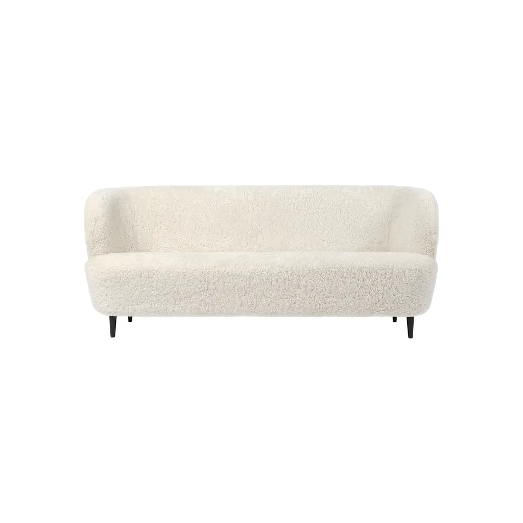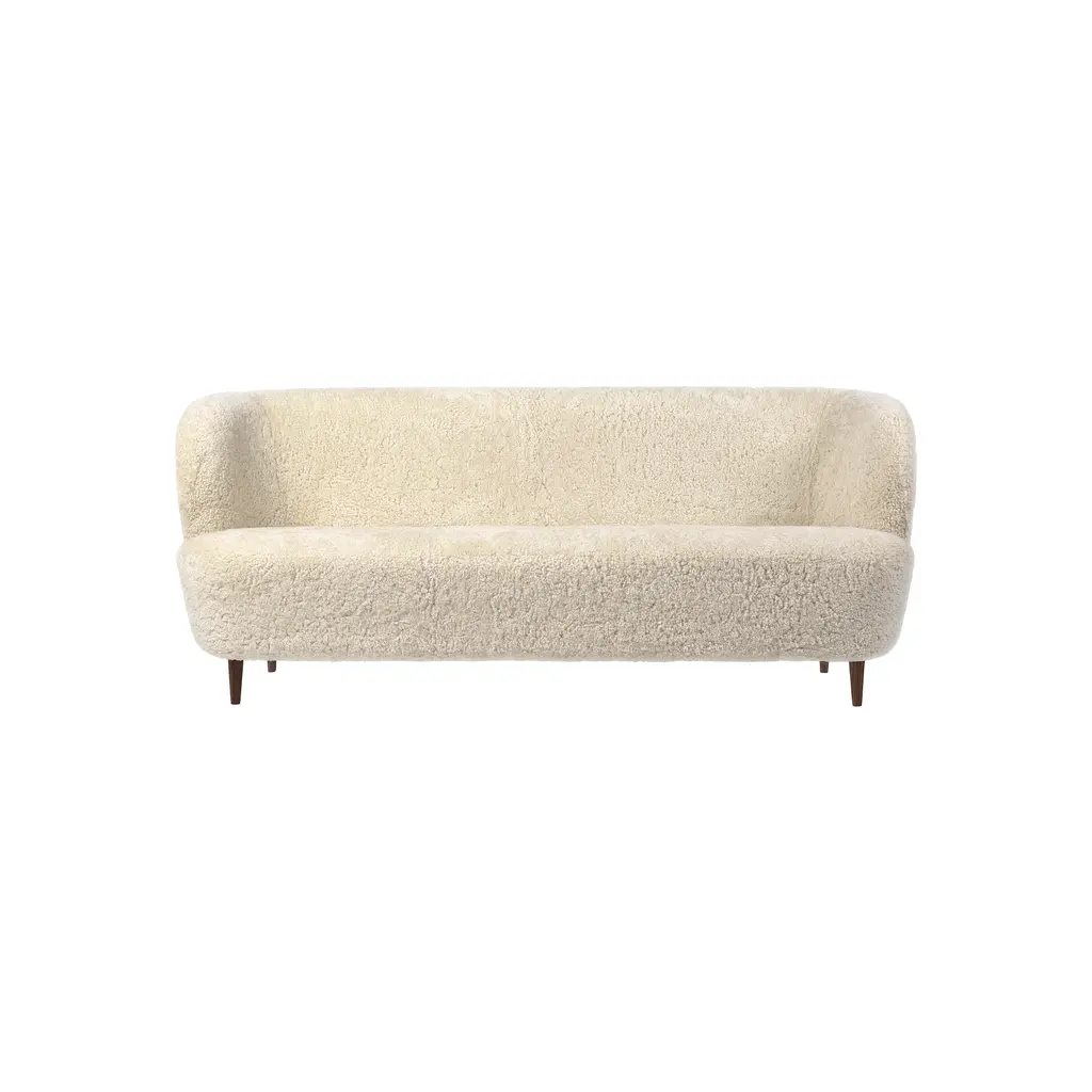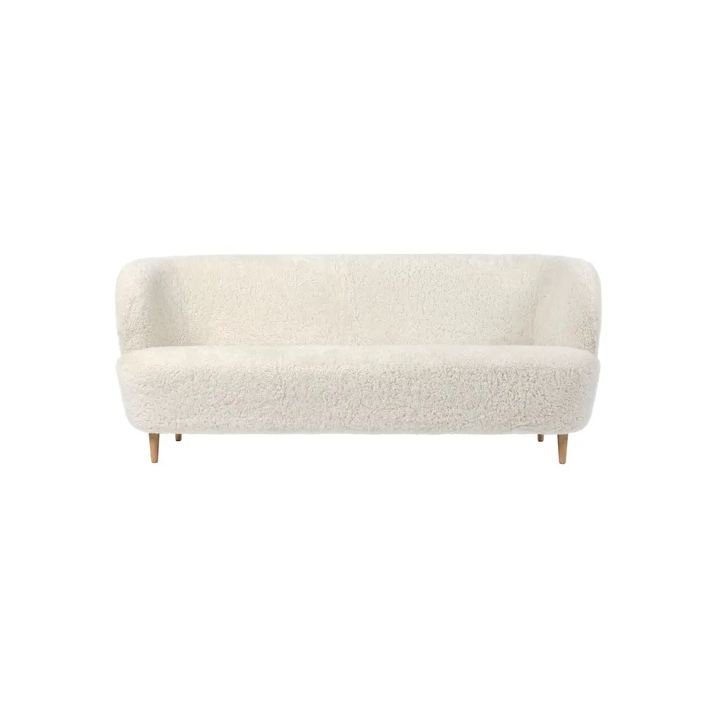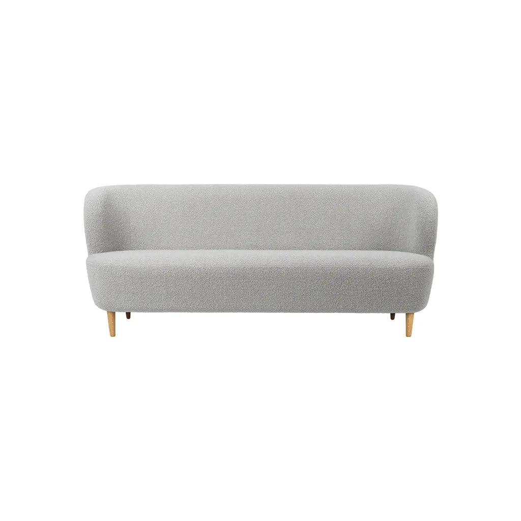 Gubi’s 3-seater gets a version with wood legs that imparts a lighter-looking impression to its sheltering profile. The signature Stay seating from designer studio Space Copenhagen boasts generous contours and an invitingly rounded backrest for snuggling. With the gamut of fine upholstery choices and several wood finishes, there's a custom version to suit any public or residential environ.