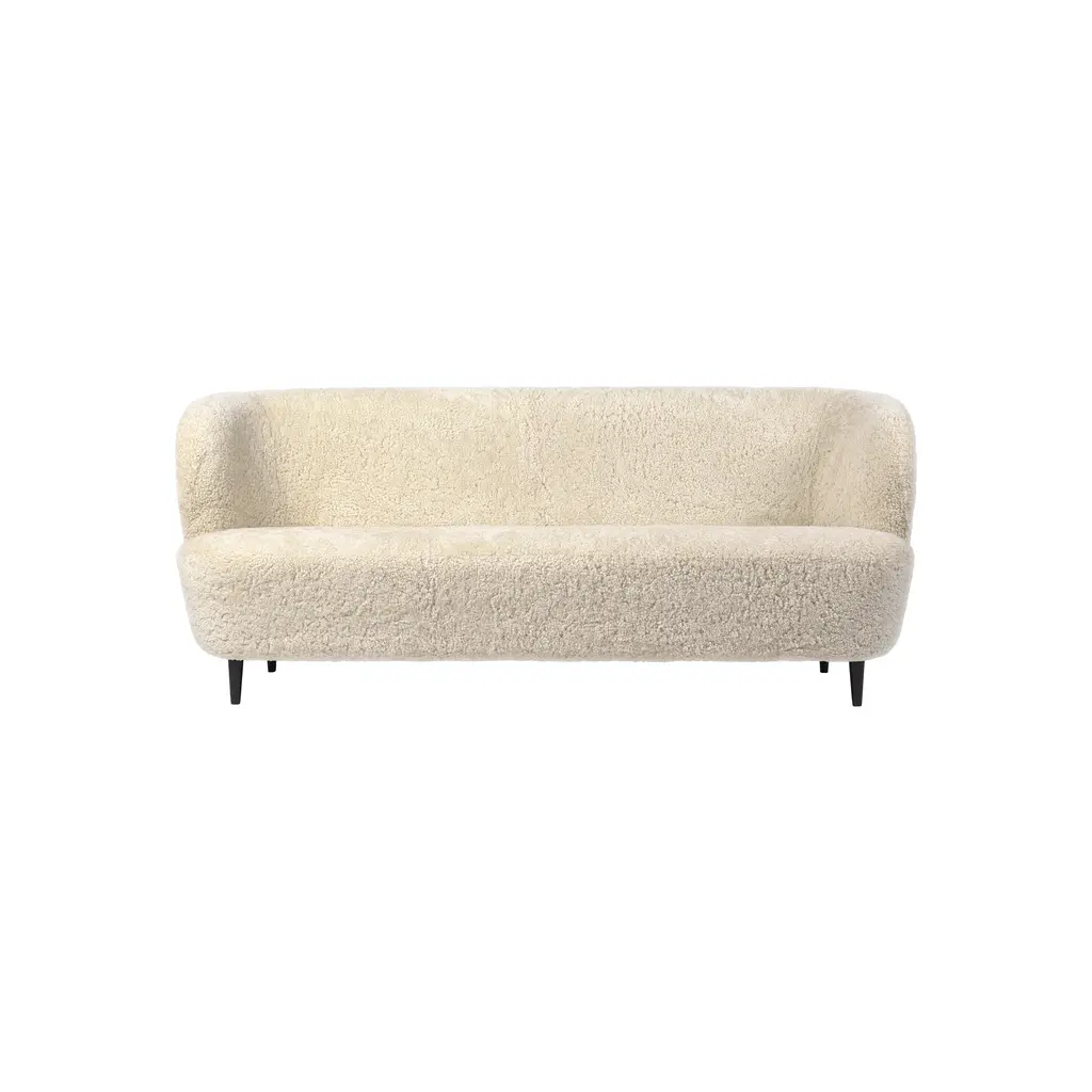 Gubi’s 3-seater gets a version with wood legs that imparts a lighter-looking impression to its sheltering profile. The signature Stay seating from designer studio Space Copenhagen boasts generous contours and an invitingly rounded backrest for snuggling. With the gamut of fine upholstery choices and several wood finishes, there's a custom version to suit any public or residential environ.