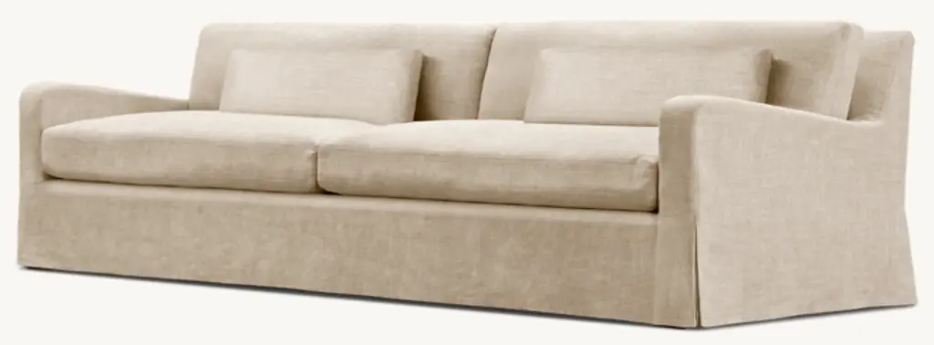 A classic interpretation of the European-inspired slope arm sofa. Deep in profile, sleekly streamlined and slipcovered for casual yet sophisticated appeal, it offers luxurious comfort. The sofa features heirloom-quality, eight-way hand-tied springs, considered the gold standard for comfort and longevity. The solid hardwood frame is bench-made by artisans using reinforced joinery with mortise-and-tenon construction, offering unmatched durability. Guaranteed for life. SHOP THE ENTIRE COLLECTION