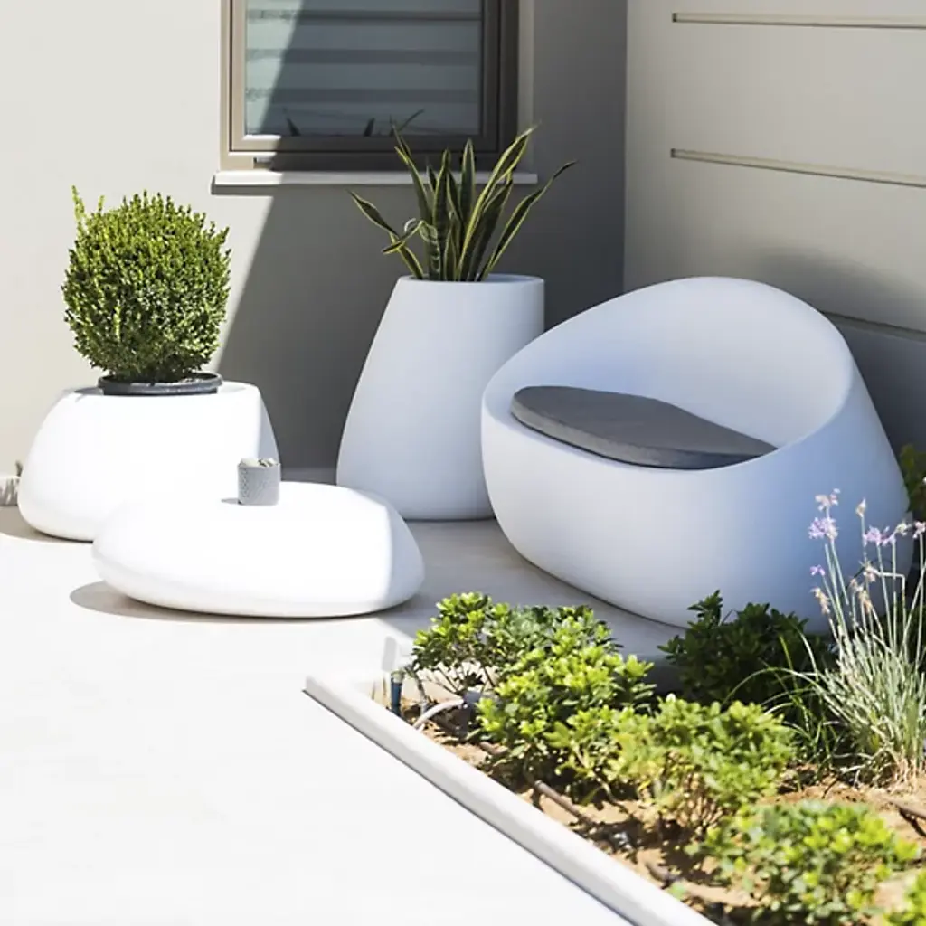 Designed by Stefano Giovannoni, 2010. Made in Spain by Vondom. Embodying the epitome of harmony between nature, man and space, the Stone Sofa channels Zen-like tranquility to artificial landscapes with its unmistakable silhouette. Its gracefully carved out seat section offers a natural feeling cradle and ample comfort to the user. Durable and weatherproof, this modern sofa's polyethylene composition allows you to also place it outside in the harsh elements. And because it's not as heavy as it looks, this three-seater sofa can be moved around with little effort. Create a relaxing oasis indoors or out with the Stone Sofa. Available in several vibrant colors and two finishes.