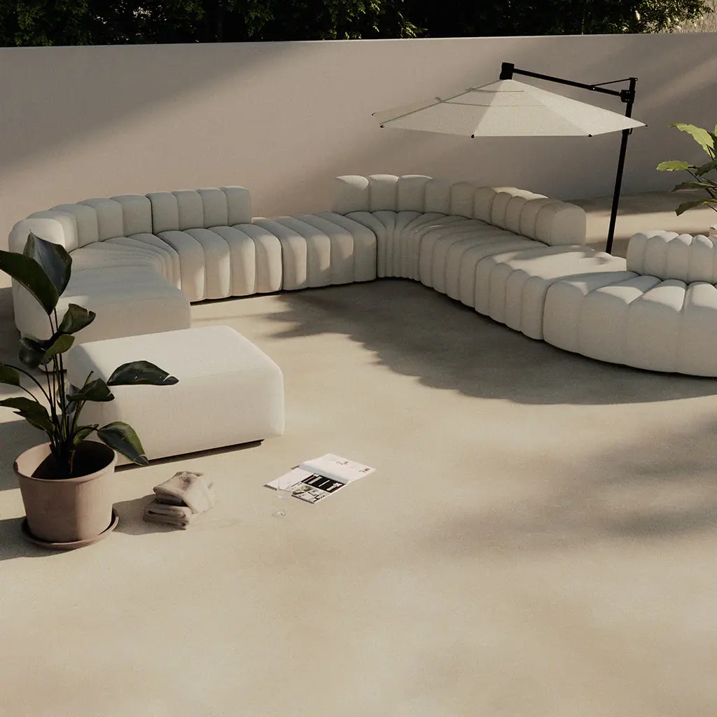 Studio Outdoor is inspired by late 70s sofa styles, refined in a contemporary way - giving the series a unique identity. Each module of Studio articulates soft and welcoming lines ideally suited for living, socializing and relaxing where one can feel totally at ease. The armrest cushion is loose and can be moved and repositioned across the series.
