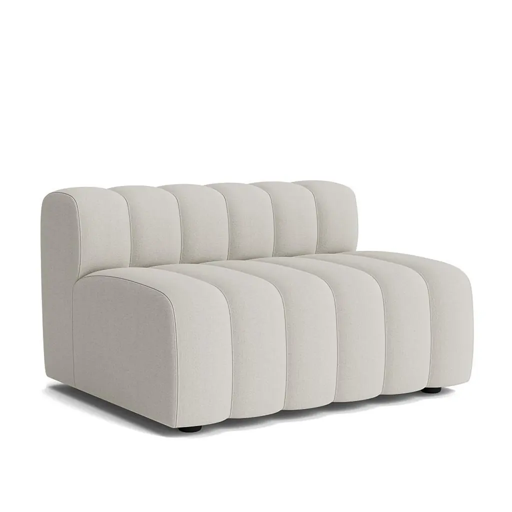 Studio sofa by Kristian Sofus Hansen & Tommy Hyldahl for Nor11Small moduleMeasures: L 120cm / P 96cm / H 73 cm / Assise H. 47 cmModular sofa: assemble different modules to create your compositionOutdoor textile: Savane Coconut (also available in whisper)Introducing Studio, the newest sofa landscape in the NORR11 collection - a tribute to a timeless era of the 70s and its expressive aesthetics. Featuring a versatile but simple system of modules, appearing in limitless options to form numerous settings, shapes and styles to adhere to all types of environments. Whether for a small living setting or spacious public site.Studio is defined by its bold fluted upholstery characteristics inspired by late 70s sofa styles, refined in a contemporary way - giving the series a unique identity. Each module of Studio articulates soft and welcoming lines ideally suited for living, socialising and relaxing where one can feel totally at ease. The armrest cushion is loose and can be moved and repositioned across the series, balancing the fluted upholstery.