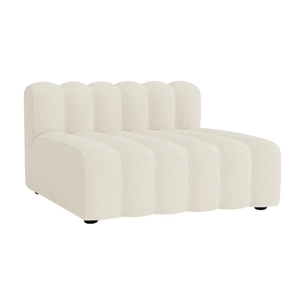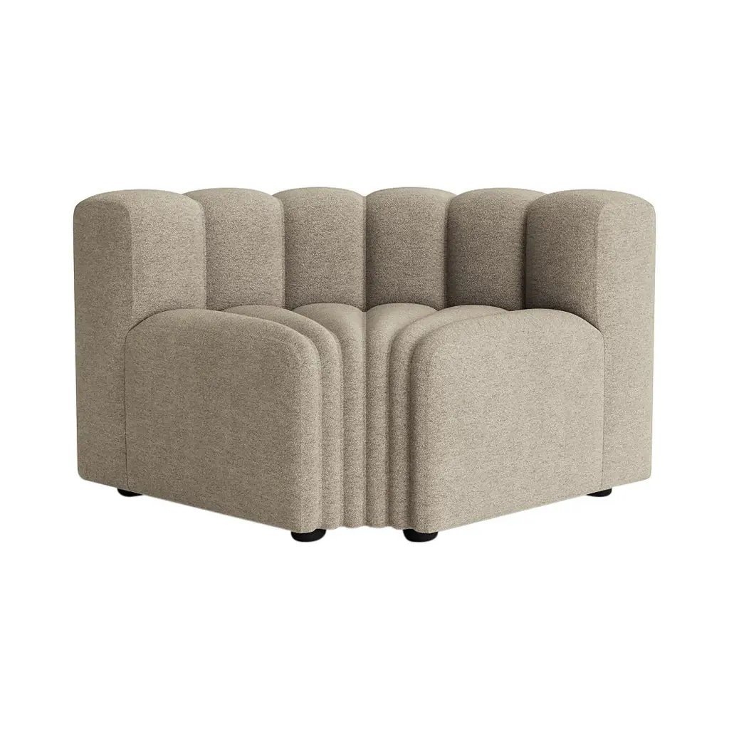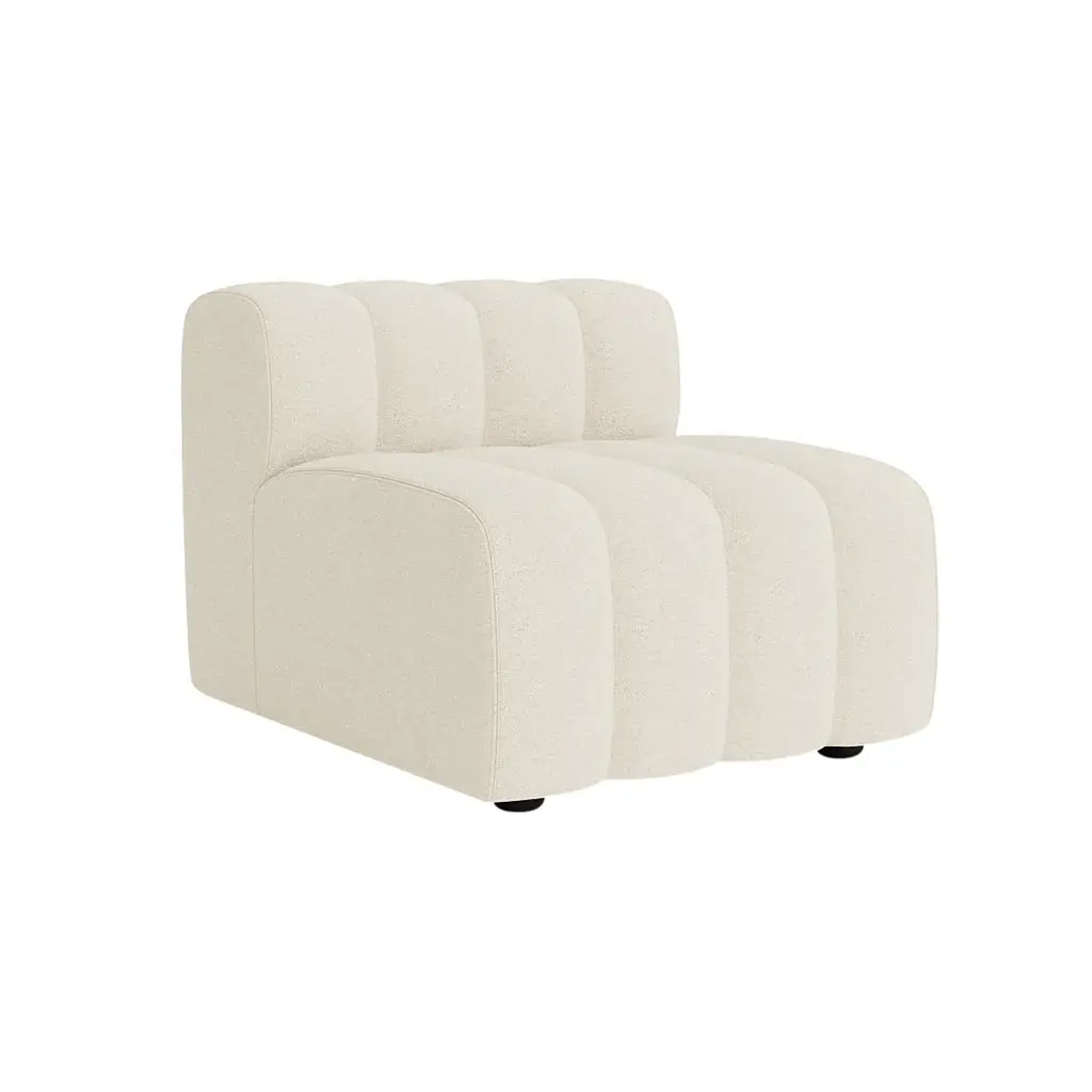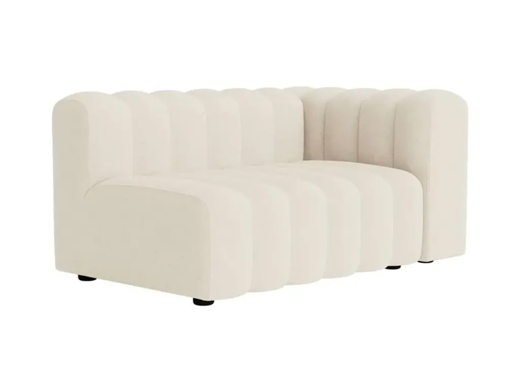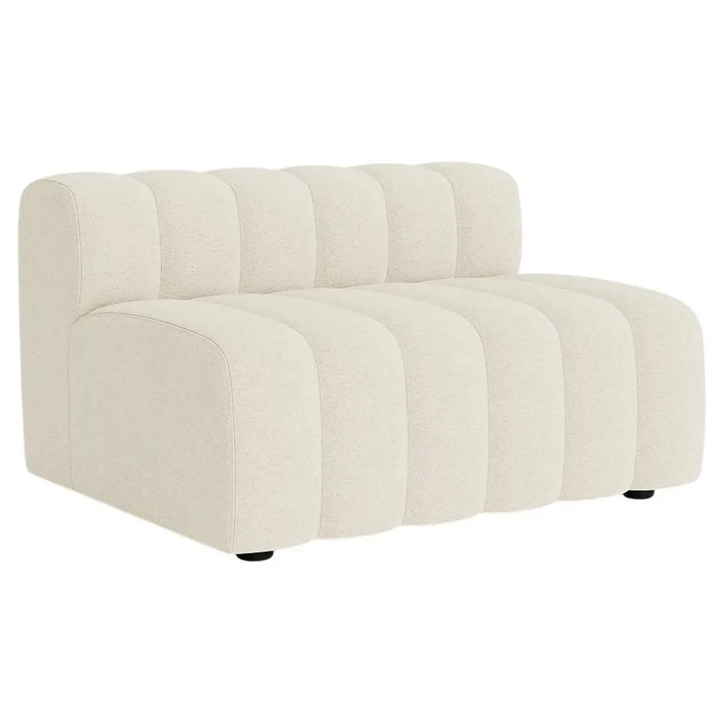 Inspired by the bold aesthetics of the 1970s, the Studio Modular Sofa from Nor11 is characterized by its fluted upholstery and soft, inviting lines. The system includes multiple module variations that can be arranged to form different setups, whether for small living areas or larger social spaces. The loose armrest cushions are movable yet dense, boasting ample customization without sacrificing a comfortable and sturdy seat. Modules can be linked using a click-link system and are available in a wide range of high-quality fabrics and leather options.