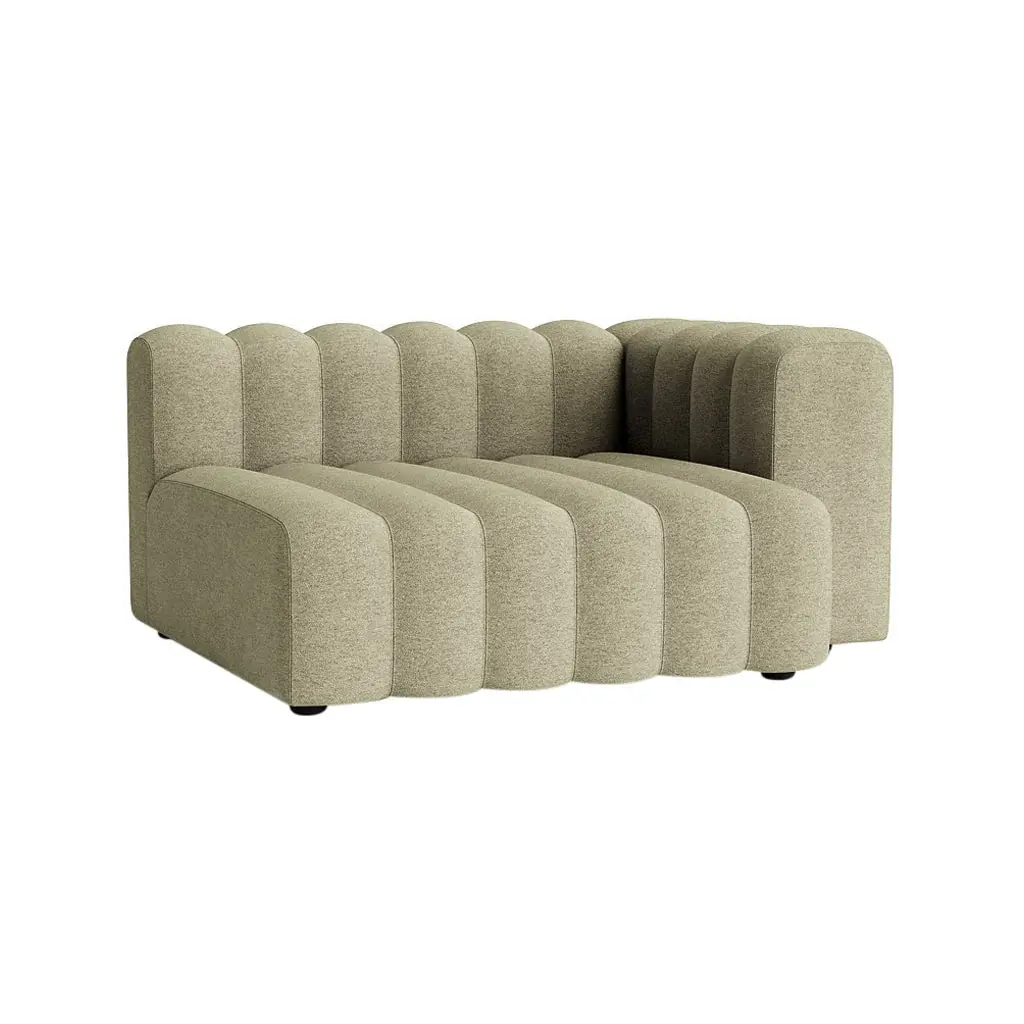 Inspired by the bold aesthetics of the 1970s, the Studio Modular Sofa from Nor11 is characterized by its fluted upholstery and soft, inviting lines. The system includes multiple module variations that can be arranged to form different setups, whether for small living areas or larger social spaces. The loose armrest cushions are movable yet dense, boasting ample customization without sacrificing a comfortable and sturdy seat. Modules can be linked using a click-link system and are available in a wide range of high-quality fabrics and leather options.