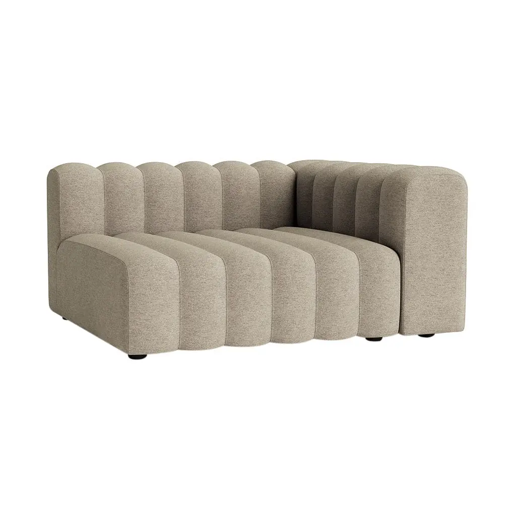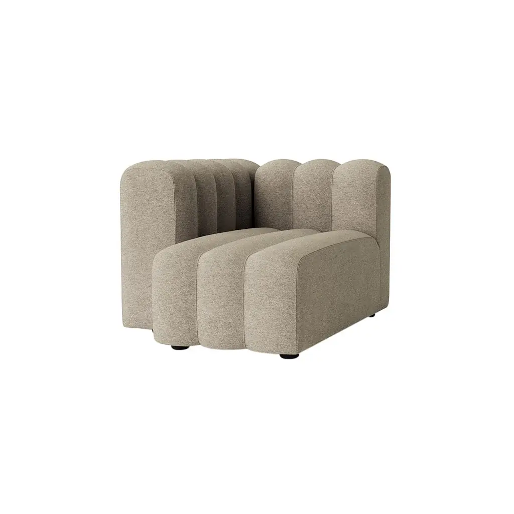 Inspired by the bold aesthetics of the 1970s, the Studio Modular Sofa from Nor11 is characterized by its fluted upholstery and soft, inviting lines. The system includes multiple module variations that can be arranged to form different setups, whether for small living areas or larger social spaces. The loose armrest cushions are movable yet dense, boasting ample customization without sacrificing a comfortable and sturdy seat. Modules can be linked using a click-link system and are available in a wide range of high-quality fabrics and leather options.