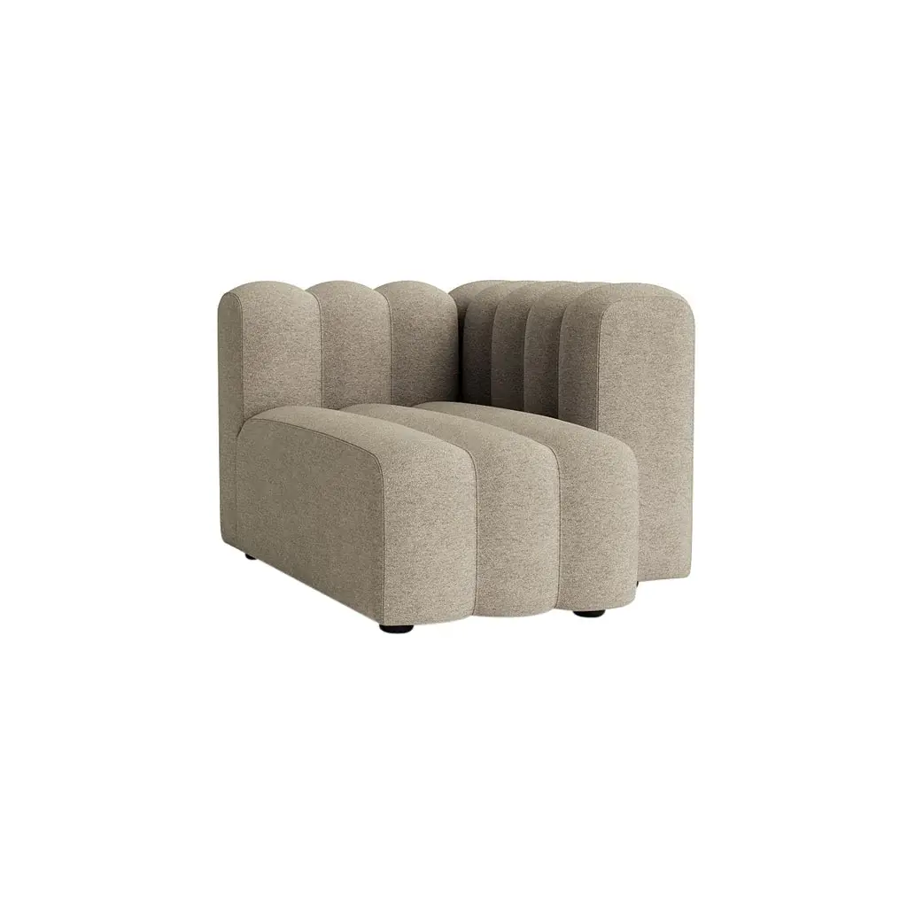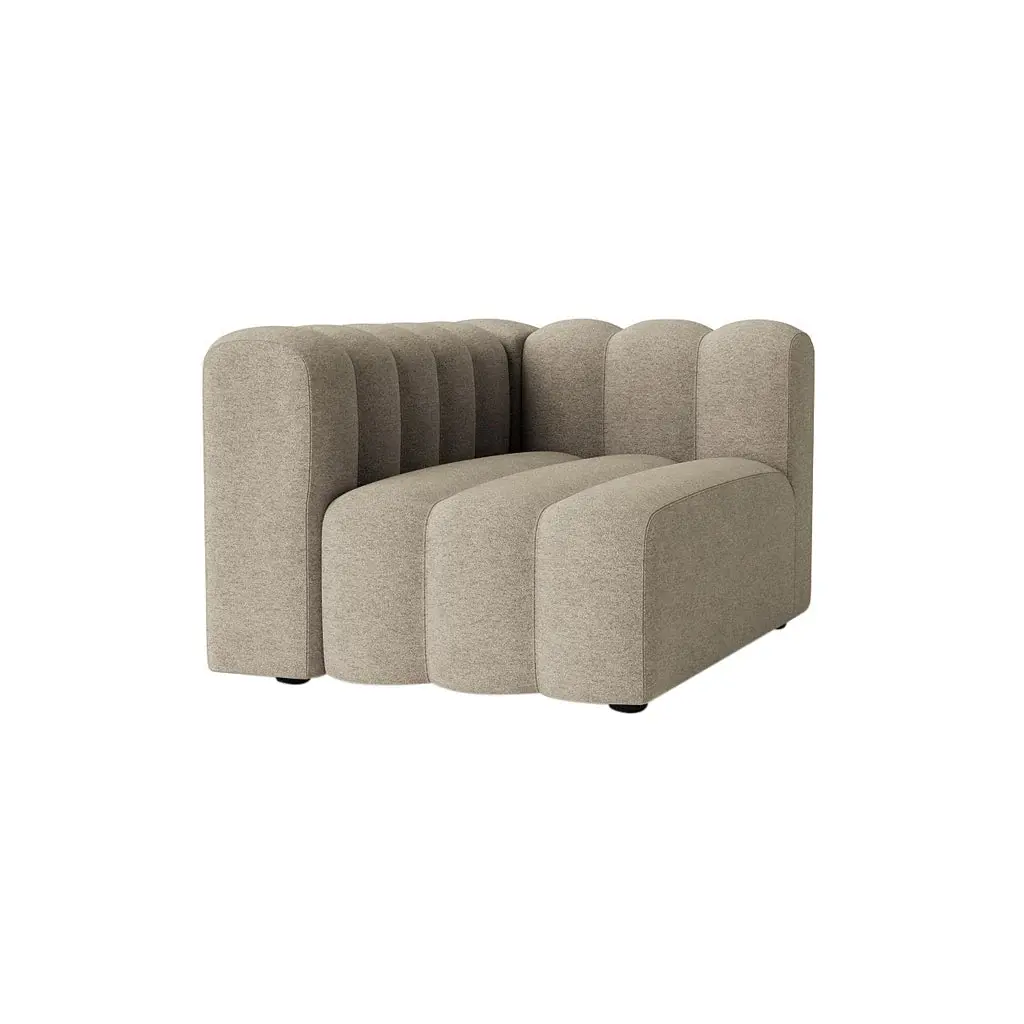 Inspired by the bold aesthetics of the 1970s, the Studio Modular Sofa from Nor11 is characterized by its fluted upholstery and soft, inviting lines. The system includes multiple module variations that can be arranged to form different setups, whether for small living areas or larger social spaces. The loose armrest cushions are movable yet dense, boasting ample customization without sacrificing a comfortable and sturdy seat. Modules can be linked using a click-link system and are available in a wide range of high-quality fabrics and leather options.