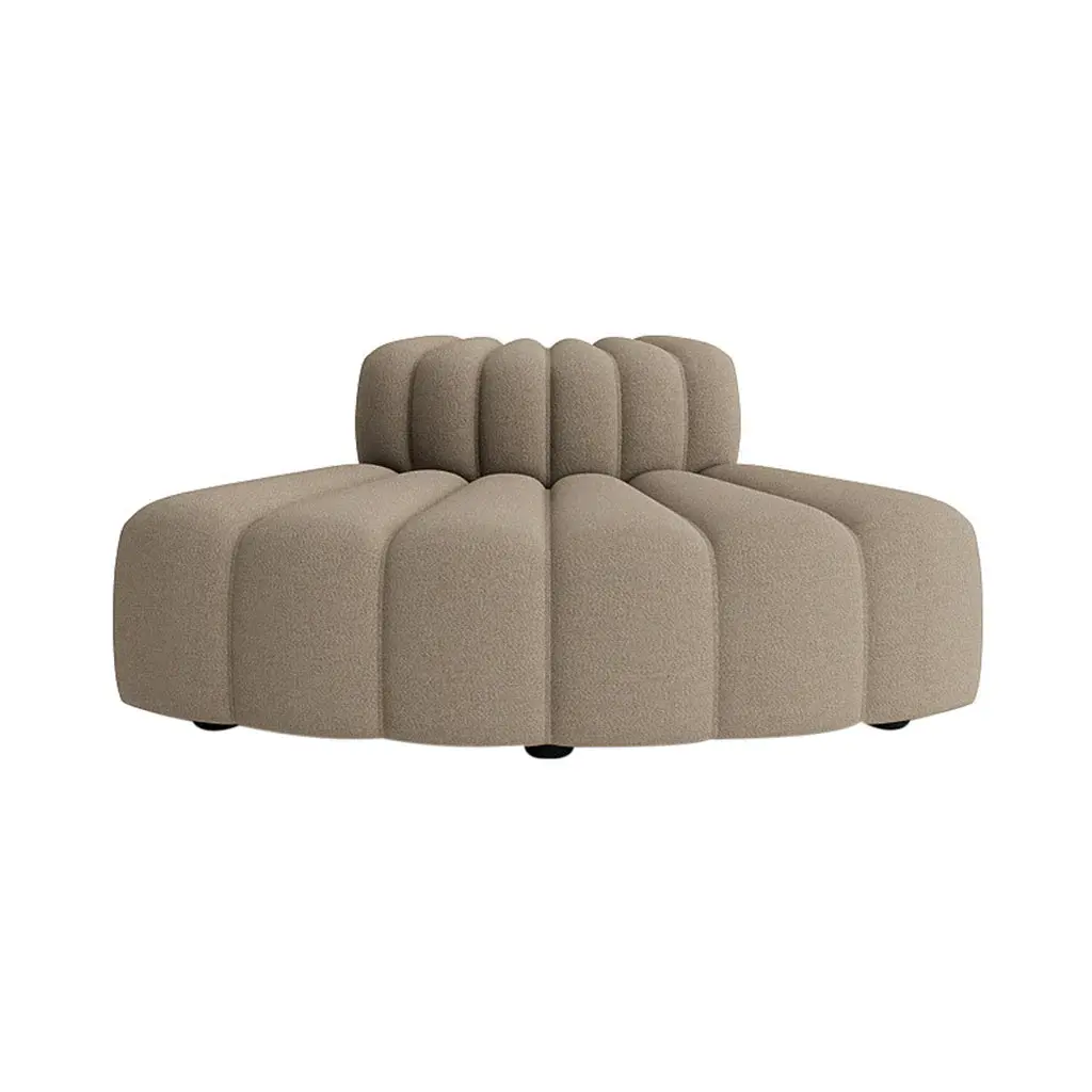 The Studio Outdoor Sofa Modules are designed to bring the comfort of indoor lounging to outdoor spaces. These modular units are upholstered in UV-protective and water-resistant Sunbrella fabrics, ensuring durability against the elements. The system features a 360-degree finish, meaning each module can stand alone or be combined using a Click-Link system to create versatile configurations. The fluted upholstery and soft lines, inspired by 1970s lounge styles, offer a retro-charm. The structure uses marine plywood and quick-drying foam for added outdoor resilience.