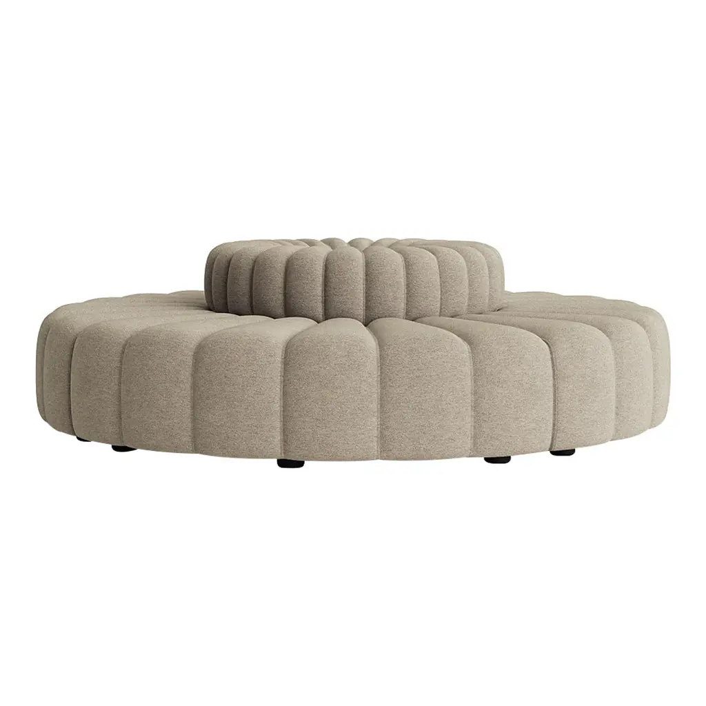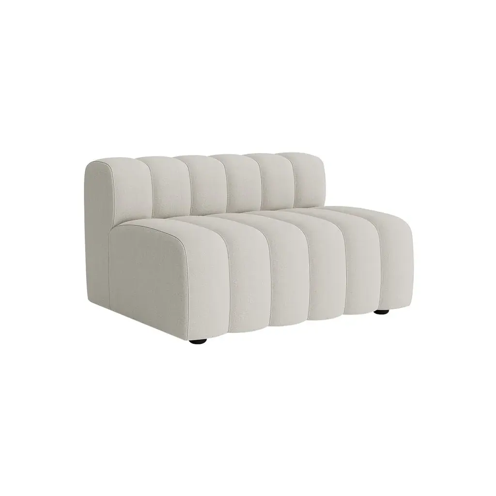 The Studio Outdoor Sofa Modules are designed to bring the comfort of indoor lounging to outdoor spaces. These modular units are upholstered in UV-protective and water-resistant Sunbrella fabrics, ensuring durability against the elements. The system features a 360-degree finish, meaning each module can stand alone or be combined using a Click-Link system to create versatile configurations. The fluted upholstery and soft lines, inspired by 1970s lounge styles, offer a retro-charm. The structure uses marine plywood and quick-drying foam for added outdoor resilience.