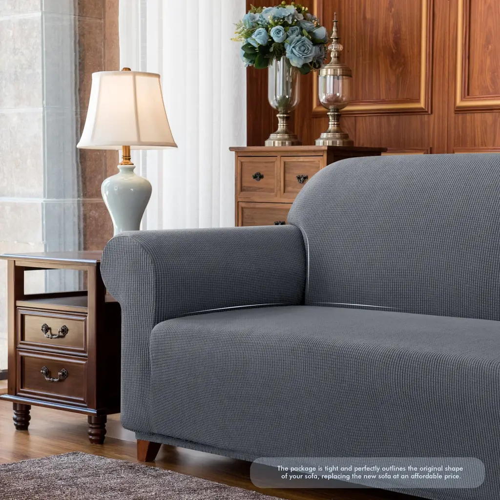 Give your sofa a new look while protecting its upholstery with this modern sofa slipcover from Subrtex. Made of a polyester and spandex fabric, this cover is soft, breathable, durable, and water-resistant. If it gets dirty, simply throw it in the washing machine.Features: Measuring Guide: (1) Please measure your furniture from the outside arm to the outside arm (do not measure down onto the seat; measure straight across). (2) Please measure from the floor to the highest spot of your sofa.