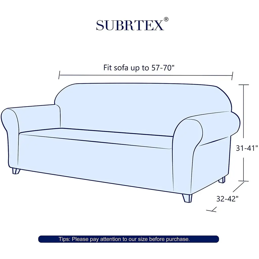 Give your sofa a new look while protecting its upholstery with this modern sofa slipcover from Subrtex. Made of a polyester and spandex fabric, this cover is soft, breathable, durable, and water-resistant. If it gets dirty, simply throw it in the washing machine.Features: Measuring Guide: (1) Please measure your furniture from the outside arm to the outside arm (do not measure down onto the seat; measure straight across). (2) Please measure from the floor to the highest spot of your sofa.