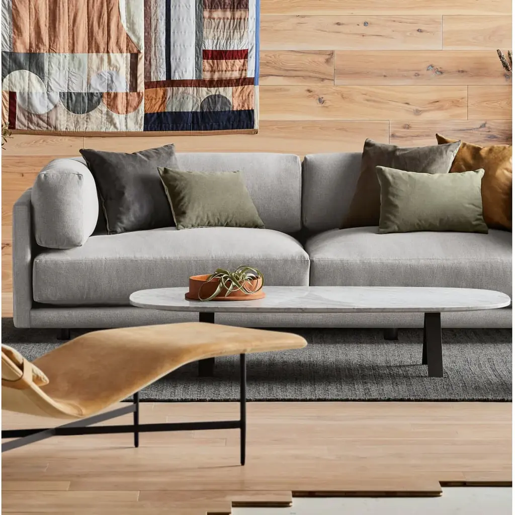 The Blu Dot Sunday Sofa is the very definition of comfort and style. This modern design features luxurious cushioning, nestled into a low-profile kiln-dried hardwood frame—presenting an inviting seating statement that looks at home in the most sophisticated interior setting. As its name suggests, Sunday is designed to facilitate the joys of a lazy Sunday afternoon. Features
