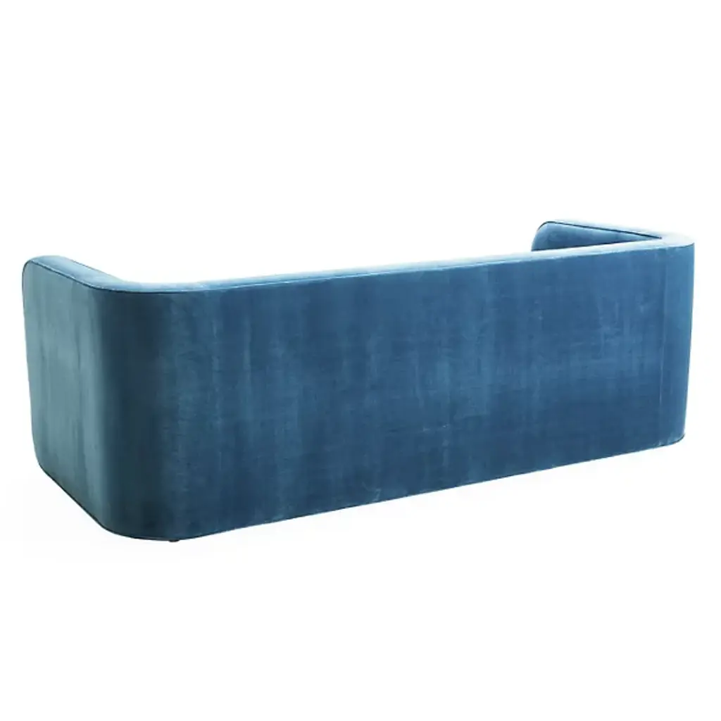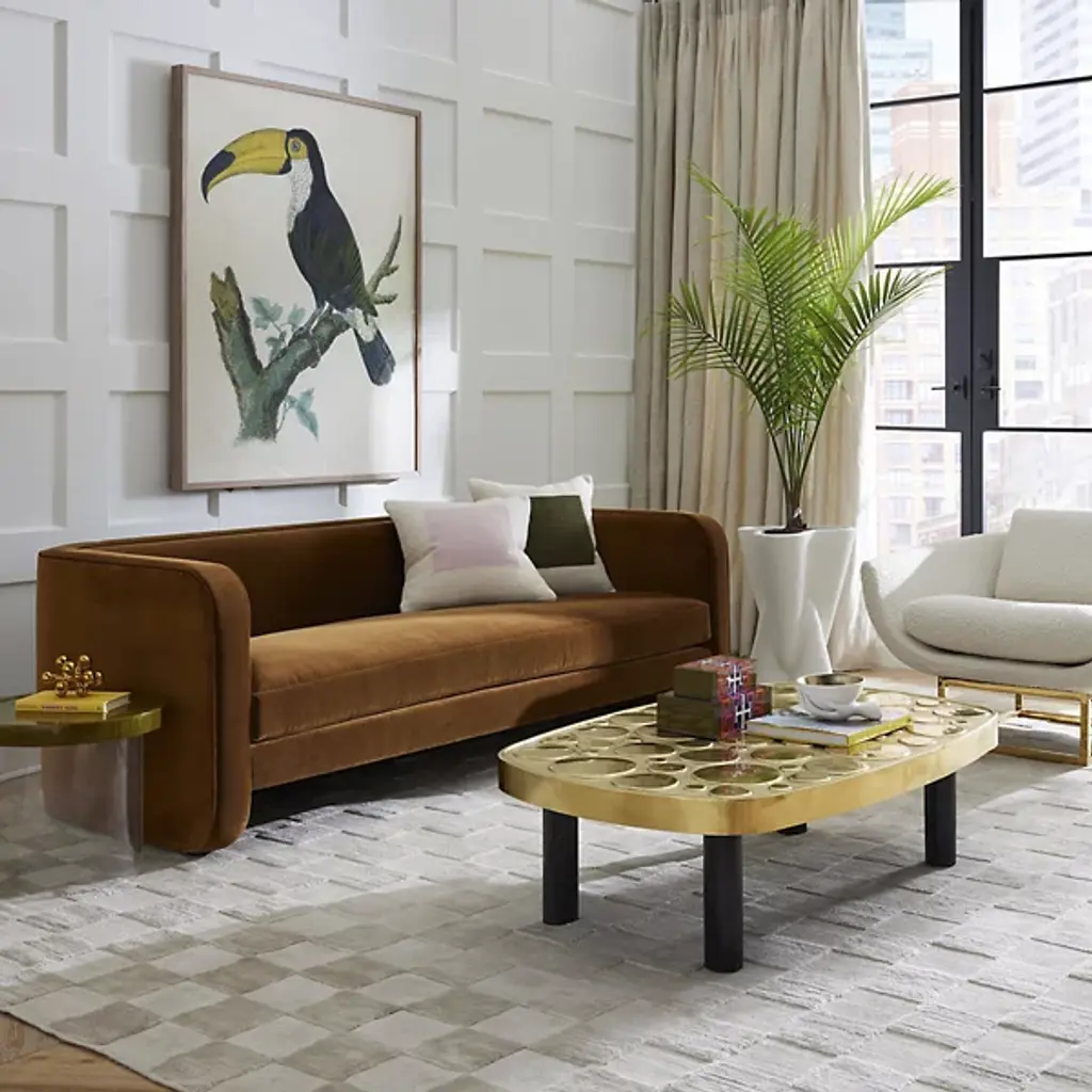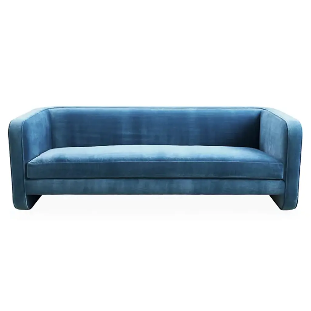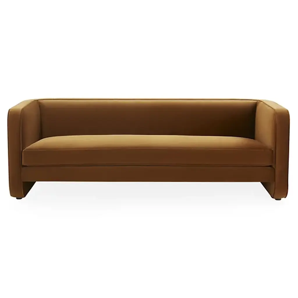 Minimalist and modern, the Sunset Sofa from Jonathan Adler is designed for ultimate comfort and cocooning. Its streamlined form is beautifully softened by rounded corners, a perfectly pitched back, and a plush, inviting bench cushion that beckons you to relax. The sleek design adds a touch of contemporary elegance, making it a perfect addition to any modern living space; whether you're lounging or entertaining, this stylish piece envelopes you in chic comfort.