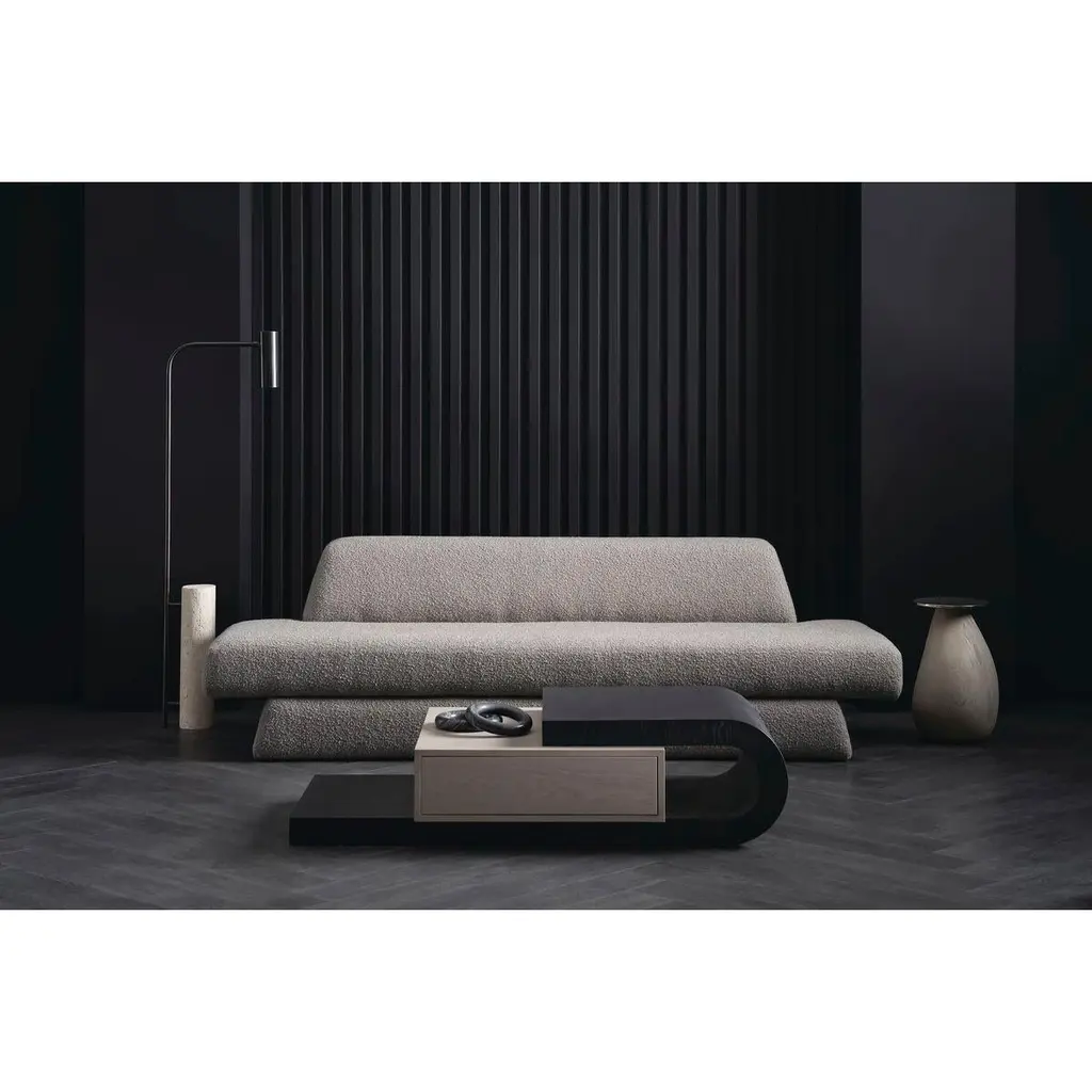 Geometry intersects with organic artistry for a look that is simultaneously timeless and modern. Clean lines and a linear form are softened by a luxurious boucle fabric, making the sofa a standout on its own, and a harmonious complement to other silhouettes in our collection.Dimensions: 94.5" W x 33.5" D x 27.5" HSeat - 16.13" H x 94.5" W x 22.75" DCONSTRUCTION:Seat frame with panel.Plush poly foam cushion.