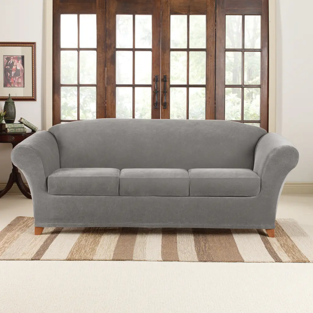 Surefit Stretch Pique 4 Piece Sofa Slipcover - Garnet