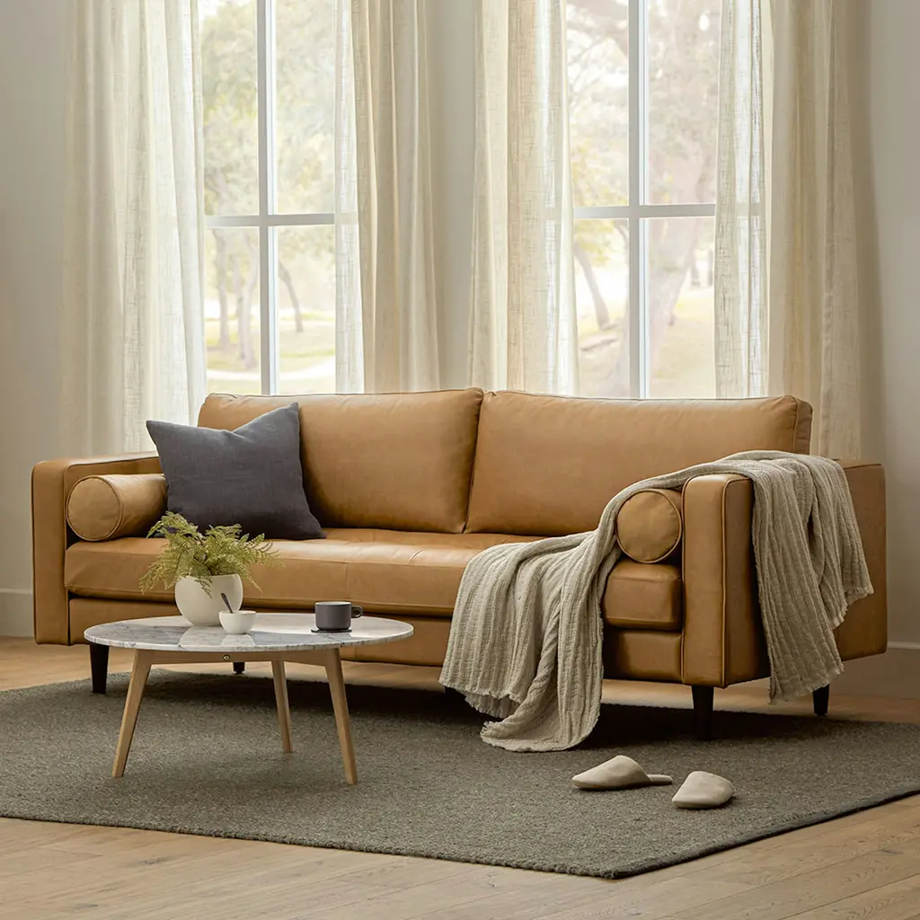 The Sven Sofa is your new BFF. The tufted bench seat supports super-long Netflix® marathons, and overstuffed cushions and round bolsters have your back no matter what position you chill in. Over time, the full-aniline leather will develop a beautiful vintage patina. Natural color variations, wrinkles and creases are part of the unique characteristics of this leather. It will develop a relaxed vintage look with regular use.