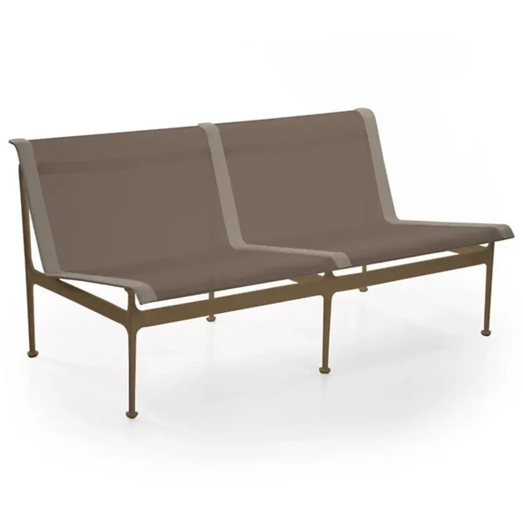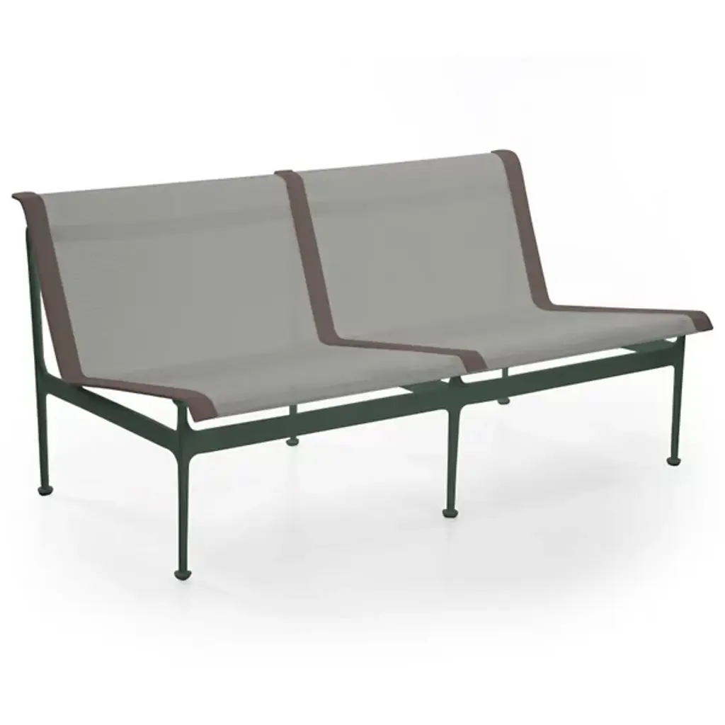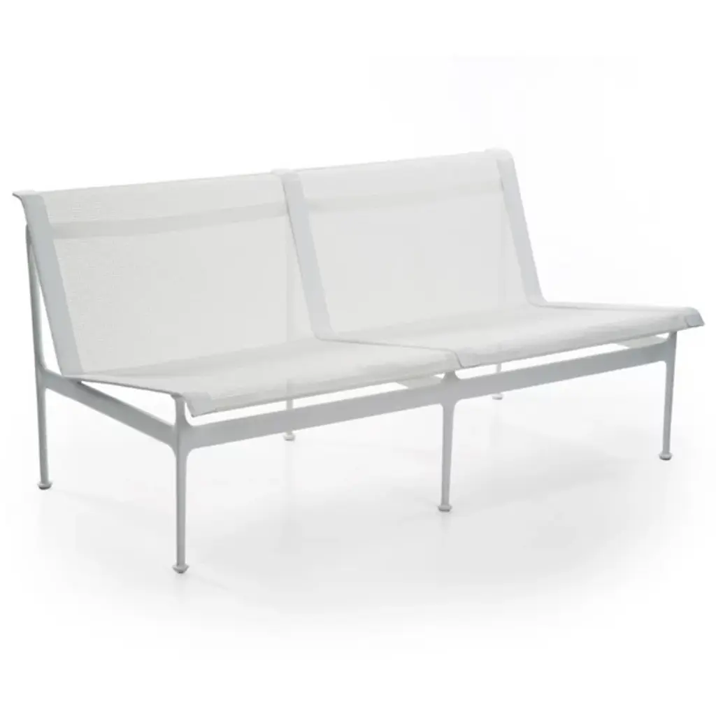 The Swell Collection Twin Seater Sofa is a beautifully crafted outdoor sofa built for style and durability. The sofa's frame is made out of cast and extruded aluminum giving this frame the strength and stability it needs to endure those long winters and warm summers. The Upholstery is made of a woven vinyl coated polyester mesh which allows for breeze, comfortability and weather resistance to match the frames durability. Made in Italy in Richard Schultz in 1966 this Sofa comes in a variety of colors giving this sofa flexibility and dexterity for perfect placement in any setting.