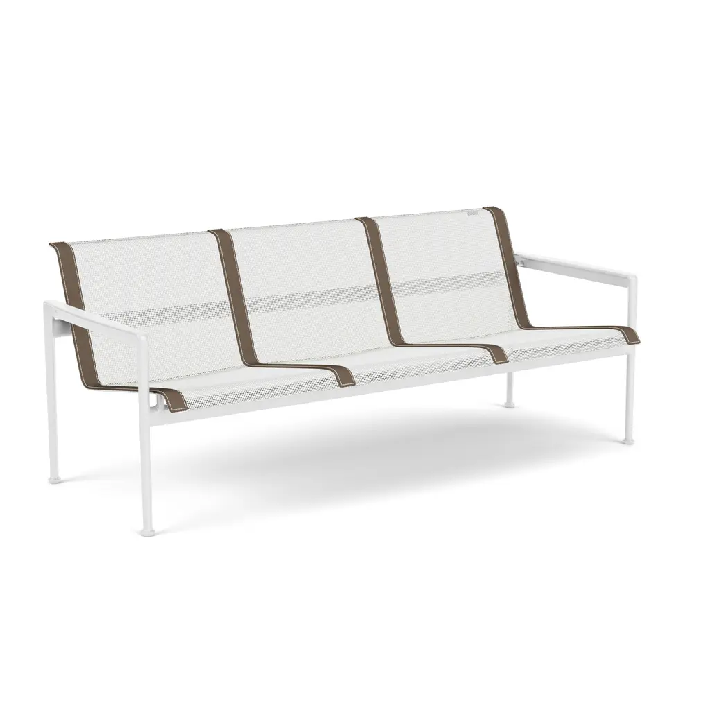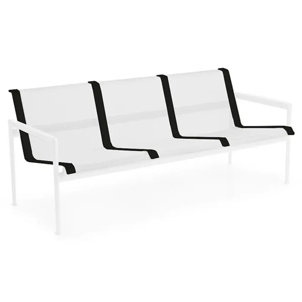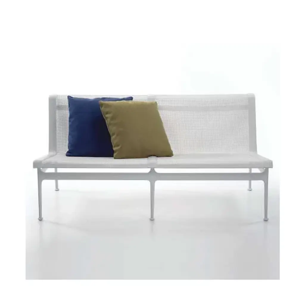 The Swell Collection Twin Seater Sofa is a beautifully crafted outdoor sofa built for style and durability. The sofa's frame is made out of cast and extruded aluminum giving this frame the strength and stability it needs to endure those long winters and warm summers. The Upholstery is made of a woven vinyl coated polyester mesh which allows for breeze, comfortability and weather resistance to match the frames durability. Made in Italy in Richard Schultz in 1966 this Sofa comes in a variety of colors giving this sofa flexibility and dexterity for perfect placement in any setting.