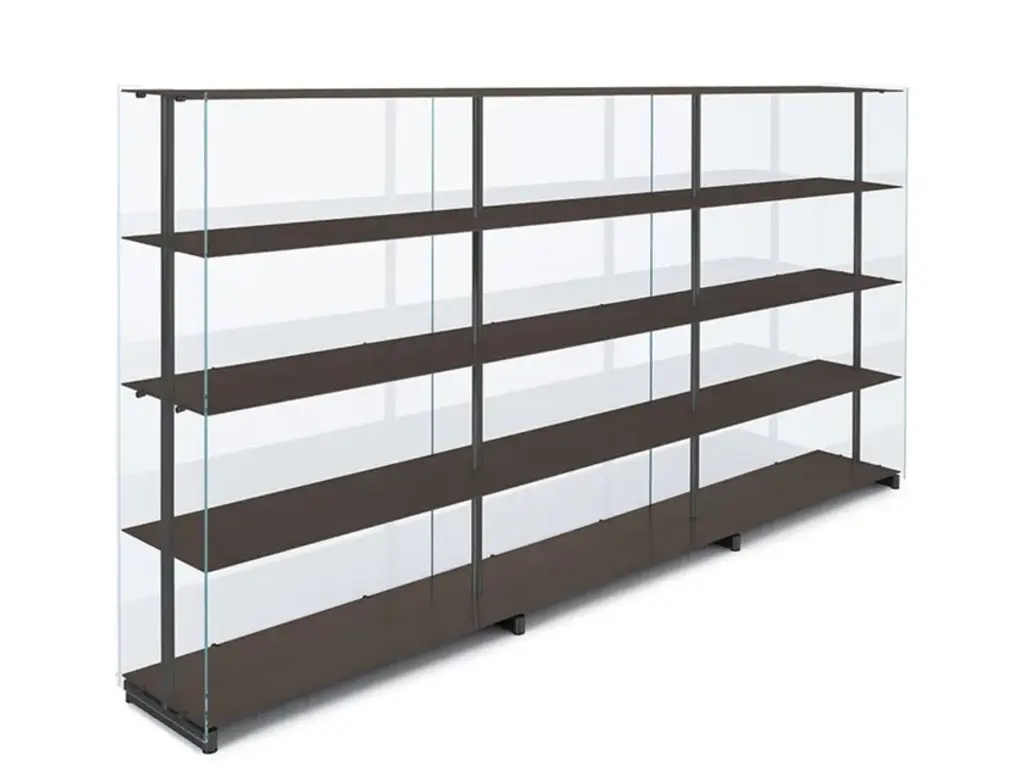 Towards the end of the 1960s, metal began to gain prominence in the world of furniture. Several modular shelving systems with round tubes existed but faced issues with connectors that were either unattractive or unstable. In 1967, Bernard FISCHLER asked Joe COLOMBO, with whom he had a strong friendship, to take on the challenge using a structure with 13mm diameter chrome tubes. Joe designed an aluminum die-cast connector that uniquely expels air from the tubes to ensure support and stability. The concept was approved! The System 037 bookcases were distributed until 1974.