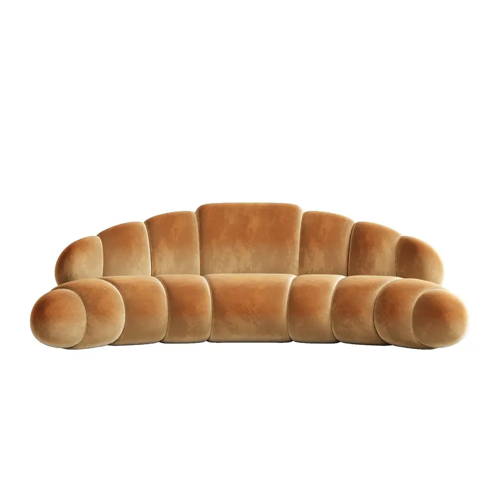 Tabacco Croissant Sofa by Plyus FurnitureDimensions: D 120 x W 240 x H 80 cmMaterials: Wood, HR foam, polyester wadding, fabric upholstery.“Croissant” Sofa.Of course, for the dessert we have all the most delicious and favorite pieces. Collection dedicated to the culture of food, love of food and the most popular dishes in the world. PLYUS Furniture creates pieces in collectible design segment. We create modern, ergonomic furniture in a minimalist style that unites people, places and eras, improving the quality of life. PLYUS Furniture capsules are limited edition. Each capsule is one story, one journey, one memory. PLYUS Furniture are items that only become more expensive over the years.