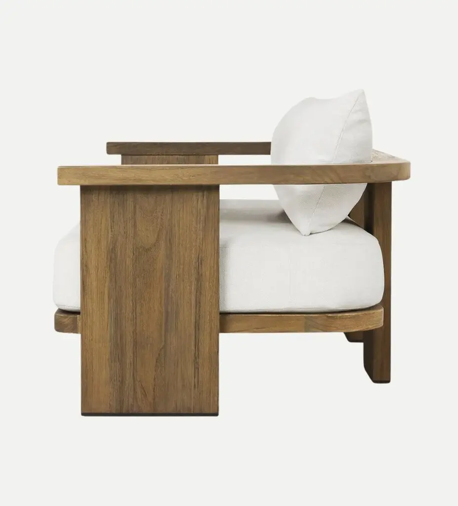 Relax in style with the Tahana Outdoor Sofa. Crafted from sustainable FSC®-certified wood, this sofa features a unique curved seat back and bold design. The high performance Italian upholstery adds comfort and durability. Easily cover or store indoors during bad weather. Dimensions: 96.00"w x 34.50"d x 29.25"h Seat Height: 15.20" Seat Depth: 22.13" Seat Width: 88.98" Materials: 100% Polypropylene, Solid FSC®-Certified Teak, 59% Polyurethane Foam, 30% Polyester Fiber, 11% Polyester Fiber Batting Weight: 143.63 lbs